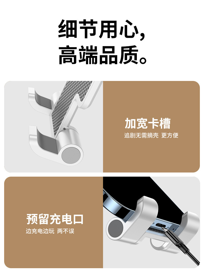 产品规格:9.8*12.5*16.8cm 材 质:ABS+铝合金+硅胶+单轴旋转底座 颜 色:白色 黑色 粉色 产品净重:182g 适用机型:手机 平板电脑