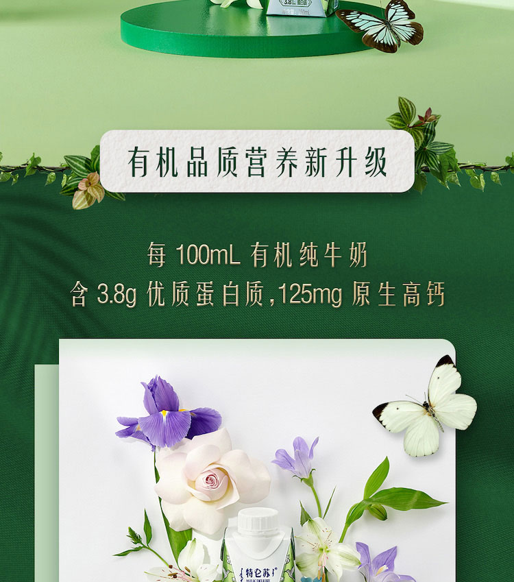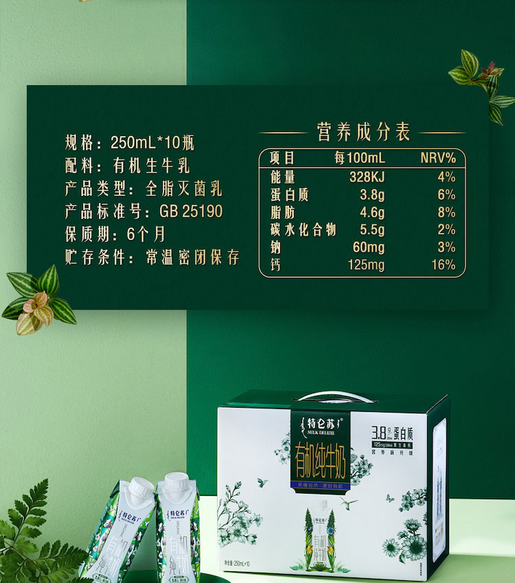 包装形式:箱装 国产/进口:国产 钙含量:高钙 规格:250ml×10包 每 100mL 有机纯牛奶含 3.8g 优质蛋白质,125mg 原生高钙 有机认证 通过中国有机认证标准,全产业链符合有机标准,安全可追溯