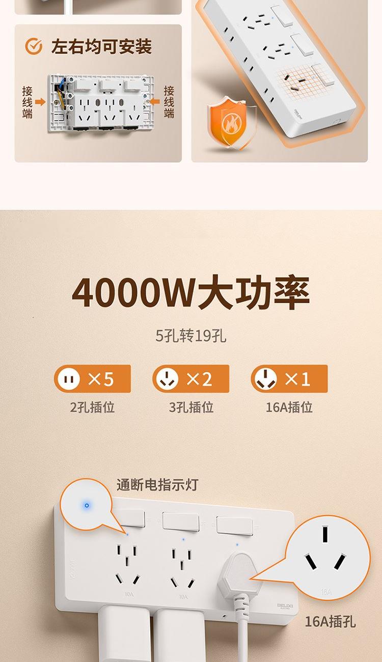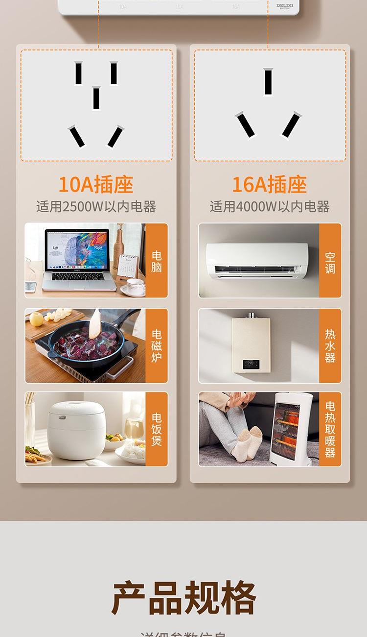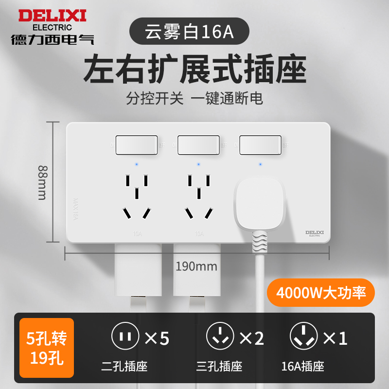 德力西DETC系列十六孔插座10A+三孔插座16A(云雾白)