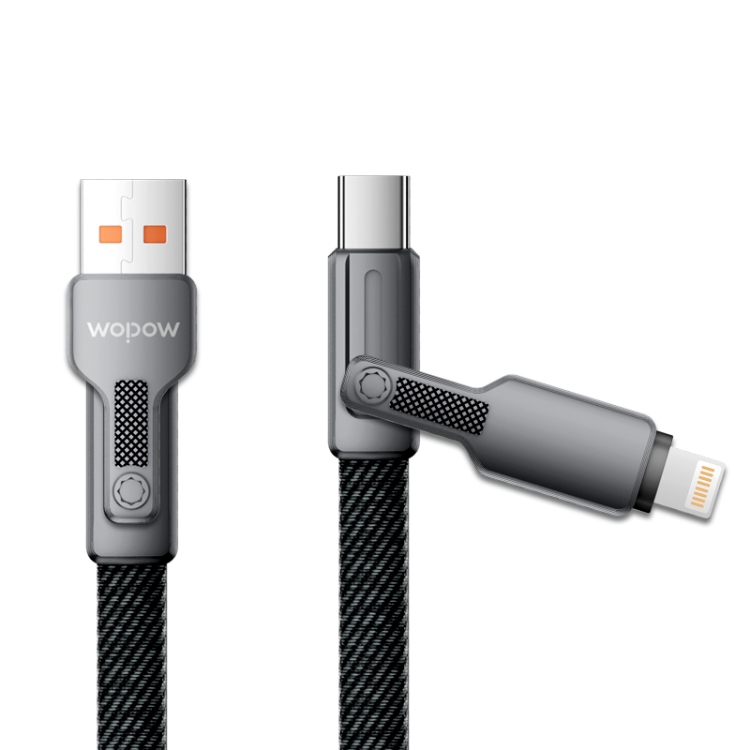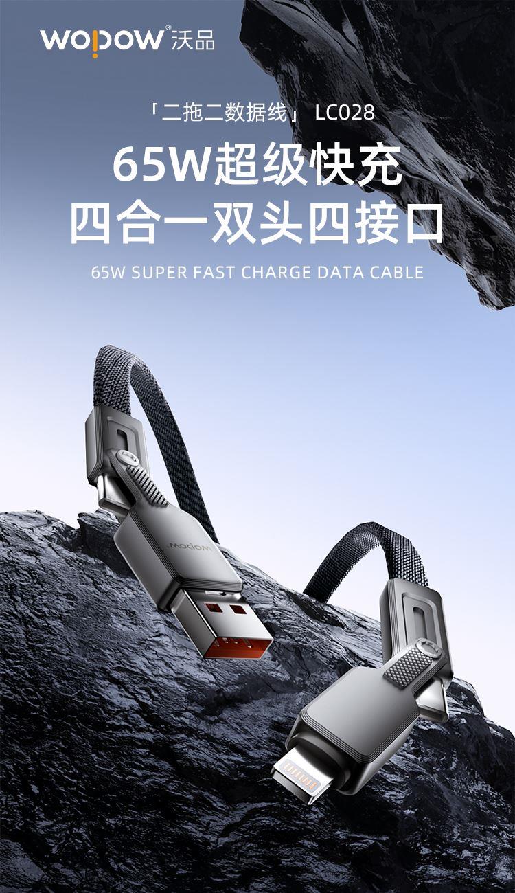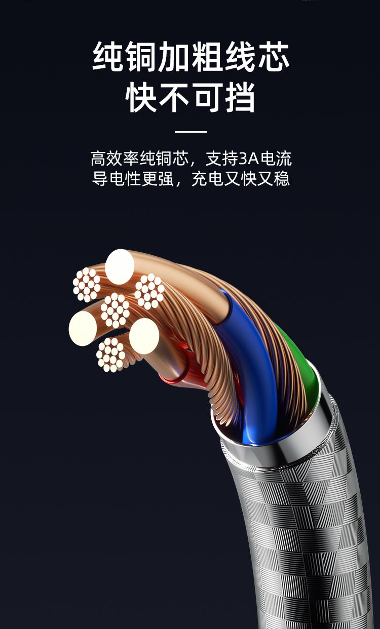 USB-TYPEC 22.5W USB-苹果12W TYPEC-TYPEC 65W TYPEC-苹果PD27W 适用于 Apple/Type-c接口手机/平板等数码产品充电 材质:编布扁线,55*0.08*2+15*0.08*3 纯铜加粗线芯,布纹编织 支持PD 65W,过3A电流,二拖二设计 多设备适配,外观简约时尚 锌合金外壳挂镀工艺,坚固耐用