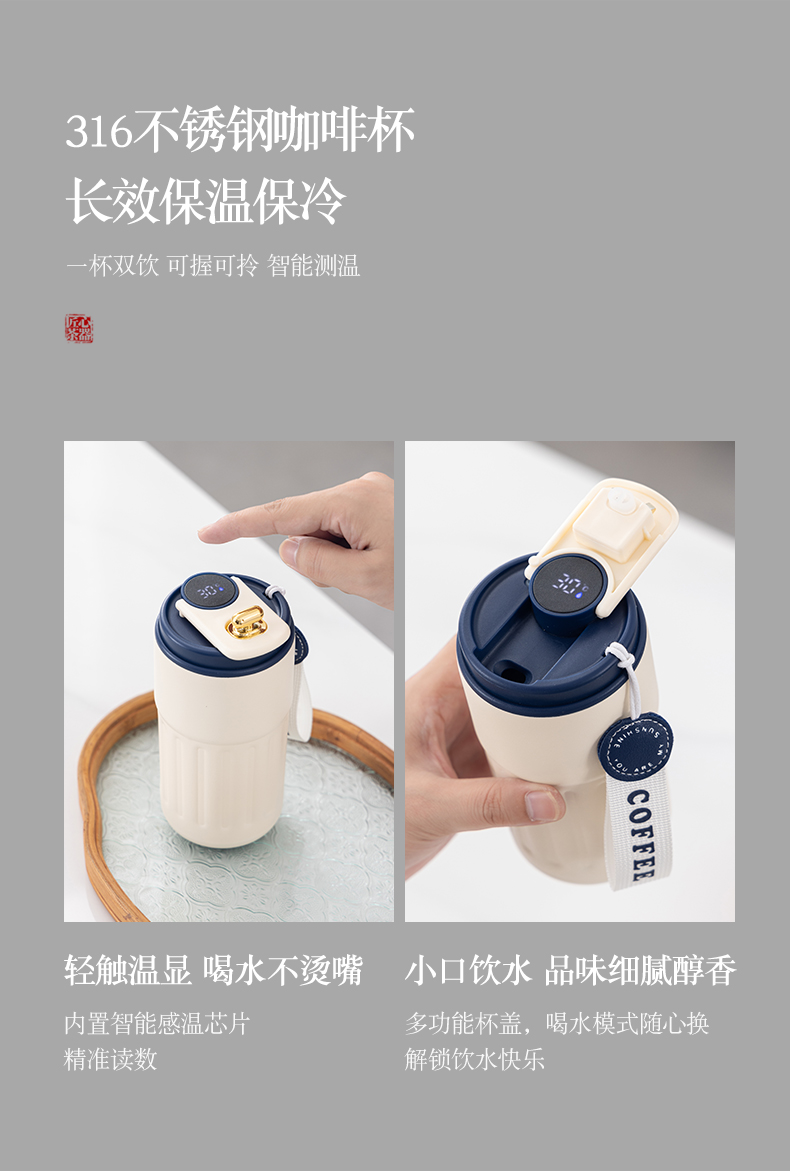 咖啡杯:13.5*7.4厘米340ml 保温咖啡杯:6.7*15厘米410m 礼盒 :48*12*23厘米 智能保温杯长时间保温保冷,陶瓷高温烧制,无铅铬,品质保证,商务实用,甄选好礼。