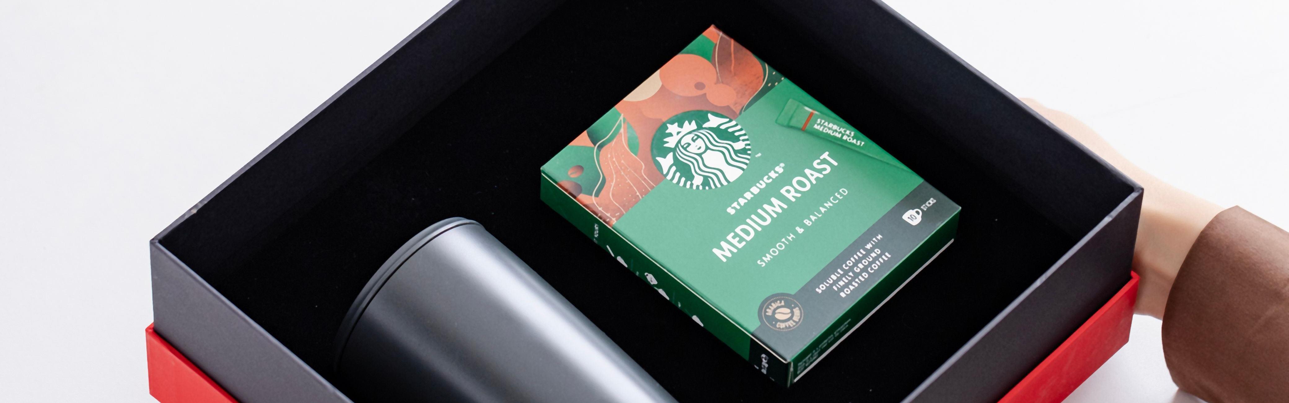 品 牌:膳魔师+星巴克 颜 色:保温杯:黑色 白色 蓝色 容 量:保温杯:415ml 咖啡:10泡/一盒 组 合:颜色随机组合 【接受定制】 定 制:可以根据客户要求定制,杯身及礼盒加LOGO 配 置:精美手提袋,精装礼盒,可根据要求增加贺卡等