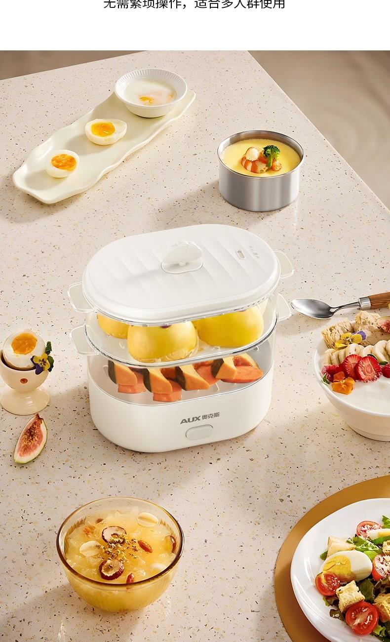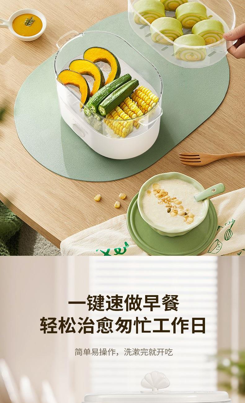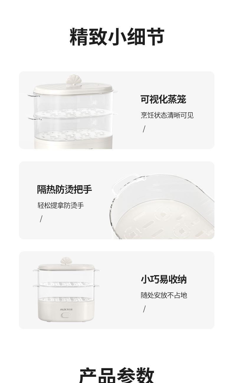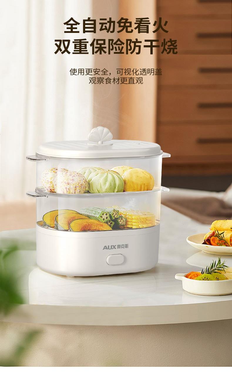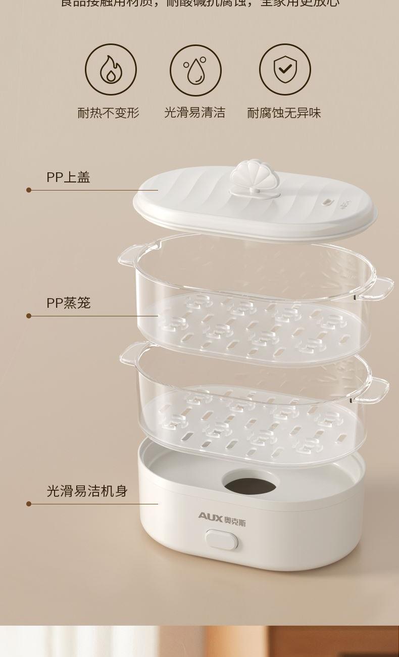 额定电压:220V~ 额定功率:300W 额定频率:50Hz 材质:易清洗发热底盘:食品级pp,可视化层架:食品级PC,三角护套、电源线 单双层可切换,发挥空间足 扩容方圆蒸笼,体积虽小容量大 300W大火力,360°循环速蒸速熟 冷凝水回流设计,包子不再湿哒哒 双耳提手蒸方便,轻轻松松端上桌