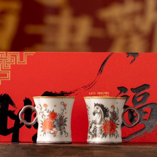 鹏翼纳福马上有钱、马到成功对杯