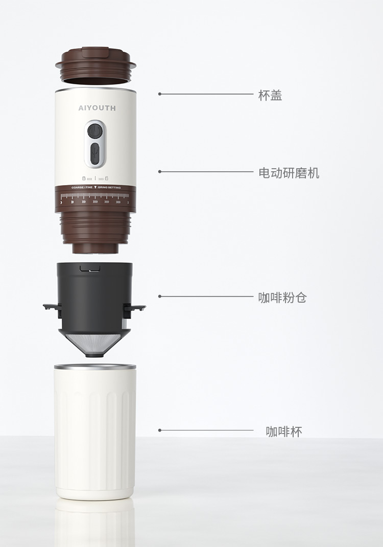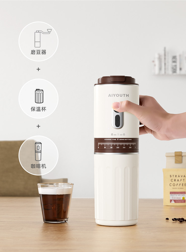 额定电压:36V~ 额定功率:8W 额定容量:250ml 产品毛重: 0.7kg 产品颜色:米白色 包装尺寸:100*100*275mm 包装清单:主机、充电线、滤网、勺子、刷子、说明书 1.一键研磨7档粗细可调节,适配不同冲泡方式 2.持久续航,轻松满足多次冲泡需求,好友分享无压力 3.无线便携咖啡机,多功能三合一,研磨、冲泡、保温咖啡杯 4.细密滤网,有效隔离细小咖啡粉末,冲泡顺畅不堵塞,一冲即净