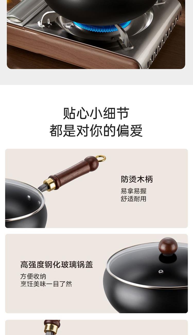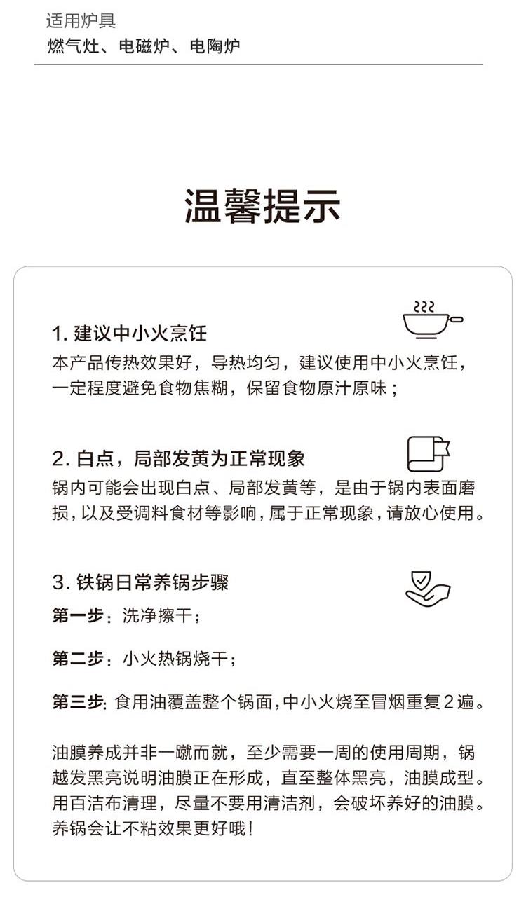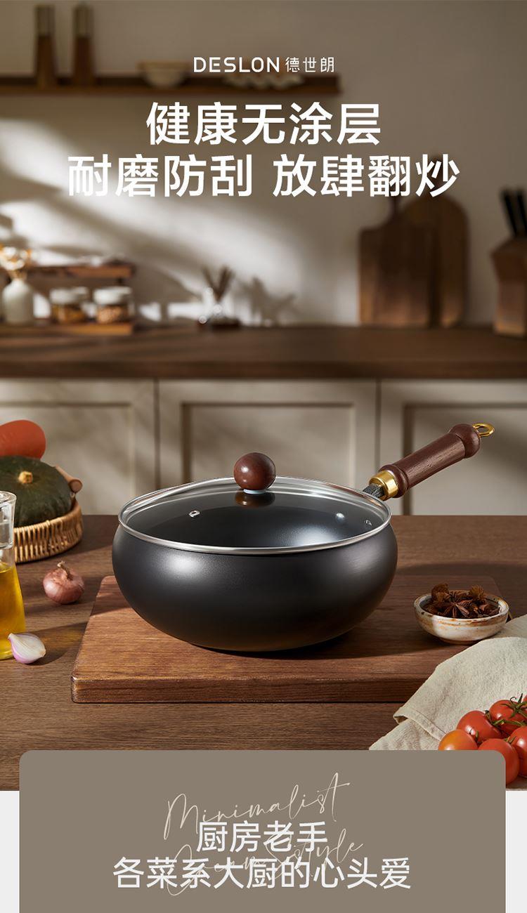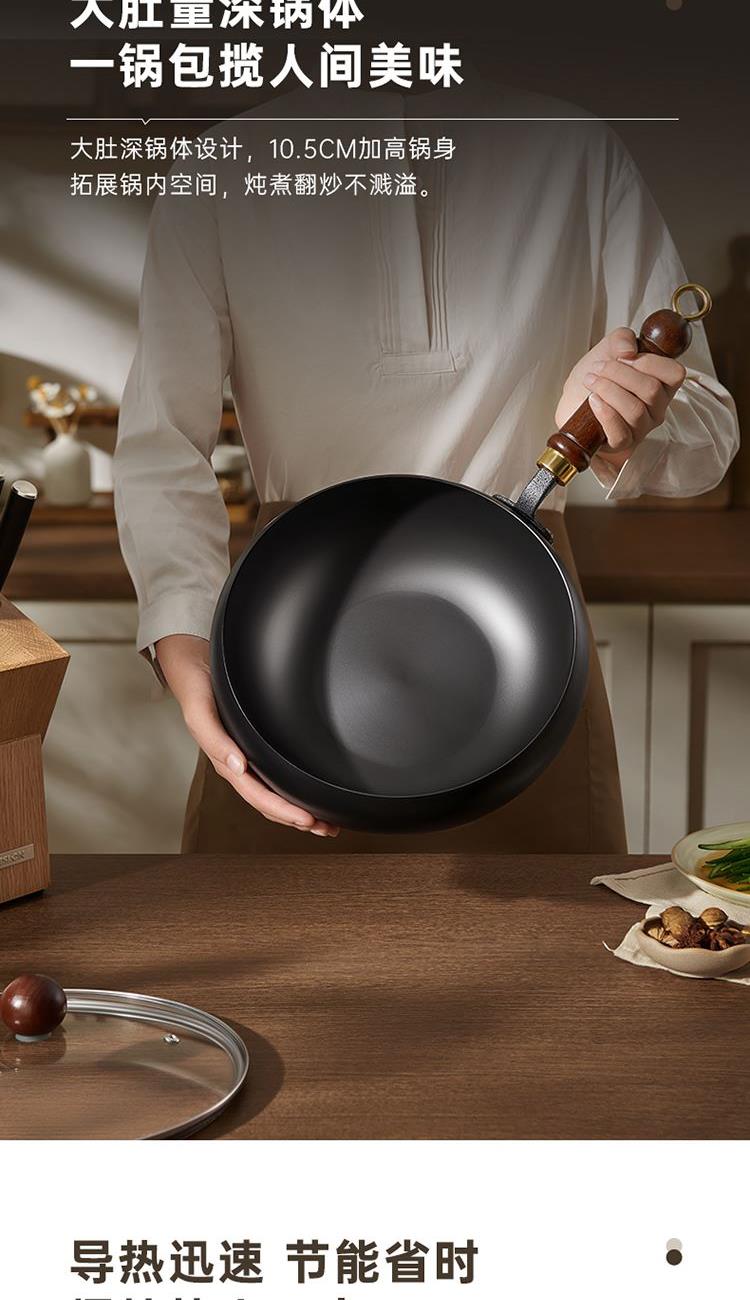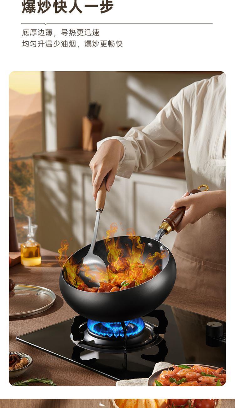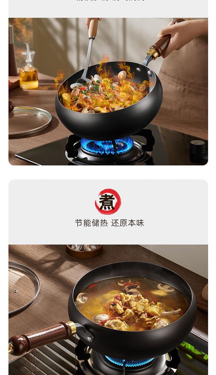 产品配置:24cm 产品材质:精铁 包装方式:彩盒+邮购盒 1、精铁材质制造,传热更快,受热均匀,节能环保;; 2、人性化高强度钢化玻璃盖,持久耐用,烹饪美味一目了然; 3、深层氮化工艺,无涂层,健康安全,可放心使用,让您烹饪更轻松; 4、隔热防烫木质手柄,符合人体工程学,使用舒适自然; 5、金属铲子、钢丝球都可使用,安全简便,美观大方。