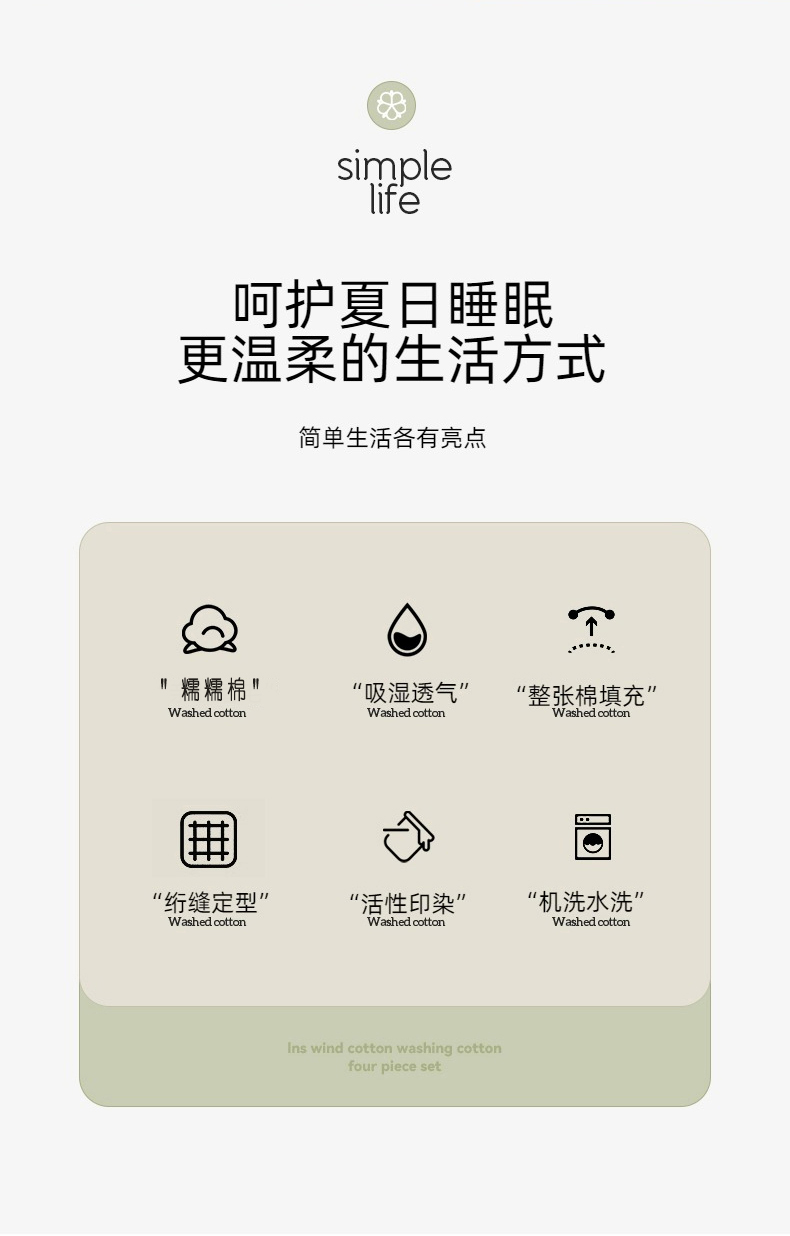 规格:180*200cm 面料:糯糯棉 填充:羽丝棉 克重:1300g 产品特点: 1.糯糯棉面料具有柔软、舒适、透气、易护理等特点,同时也具有一定的弹性和耐久性。 2.颜色艳丽,机洗不变形,不褪色,一针一线尽显品质。