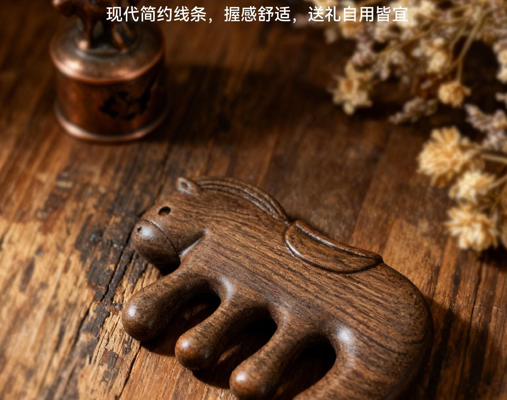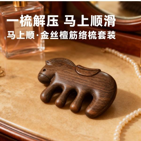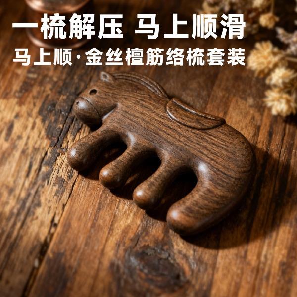 长青兔马年文创-马上顺金丝檀筋络梳套装