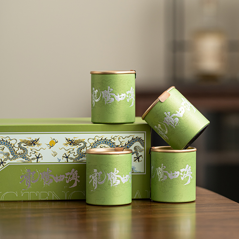 龙腾四海快客杯,觚形壶身,高腰束身,足立四方,尽显稳重和大气。壶身鎏金的球形腰束,使器件更为富丽和精神。龙盖钮更是龙行龘龘,寄意朤朤前程。壶及品杯搭配以元青花龙为主要元素的图纹做为装饰,使器件处处流露出恢宏的气势。纵观快客杯套件,不仅美观,更蕴含着丰富的历史人文底蕴。 配置:元青花茶壶*1、茶杯*2、赠粽子*2(100g*2))、 赠正山小种*6罐、冷烫工艺礼盒、礼袋