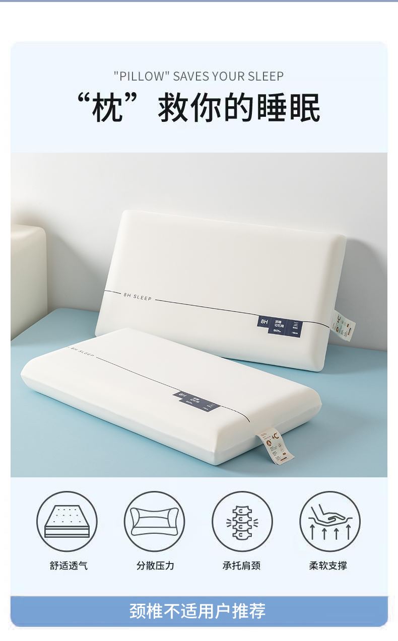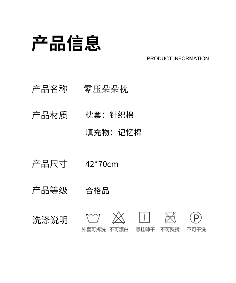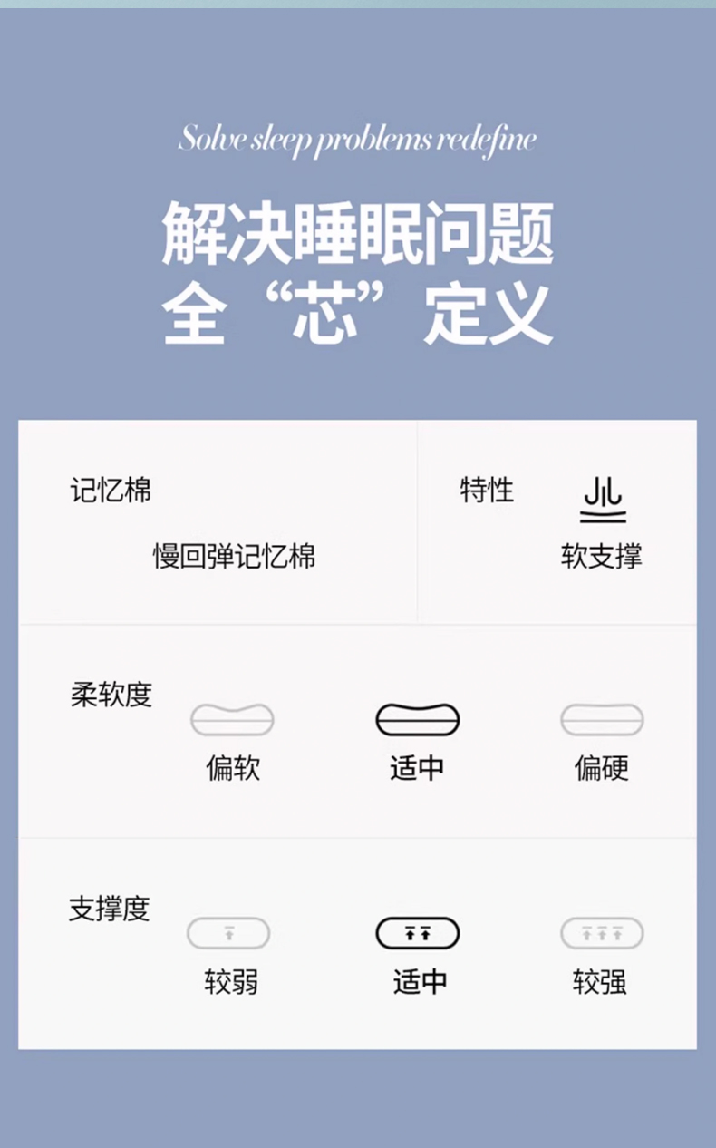 面料:针织棉 规格:42cm*70cm×8cm 填充:聚氨酯 包装:精美提袋 开启'0'压力舒适睡眠 柔软和支撑的平衡,在躺下时给头部和颈部足够的包裹感又有足够的支撑