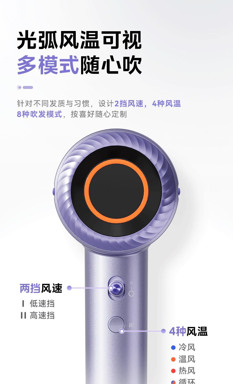 产品规格: 产品尺寸:120 x 85 x 320 mm 包装尺寸:79 x 64 x 306 mm 产品毛重:0.533 kg 产品特点: 高速电机,吹干不烤干 8档模式,2档风速,4档风温 磁吸可拆进风滤网,倒吹自清理毛发 珠光质感,礼盒包装 扩面柔风,高速风吹,发丝不打结 39亿等离子,消灭头螨马拉色菌,呵护头皮健康