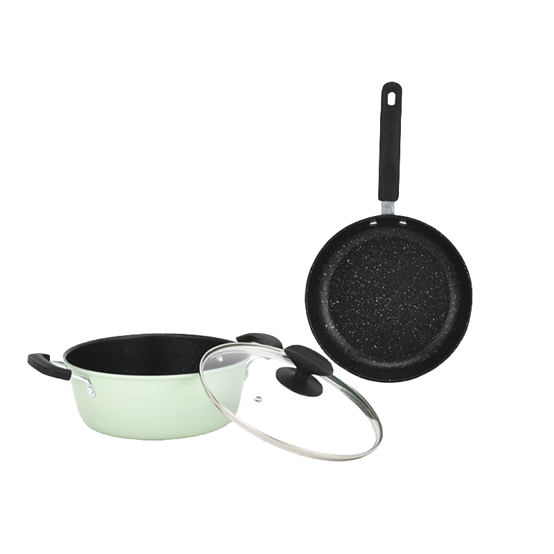 规 格:22cm汤锅+22cm煎锅 材 质 :精铁+麦饭石不粘涂层 精选优质铁基材,锅体采用独特工艺一次模压成型,独特造型优雅大方,尽享时尚烹饪生活;不粘涂层,省油少烟,光洁易亮,耐腐蚀,经久耐用,烹饪味道更可口; 手柄采用胶木手柄,隔热防烫,根据人体工程学设计的手柄,握感舒适,美观大方。