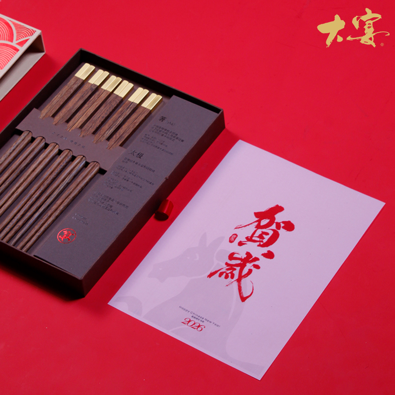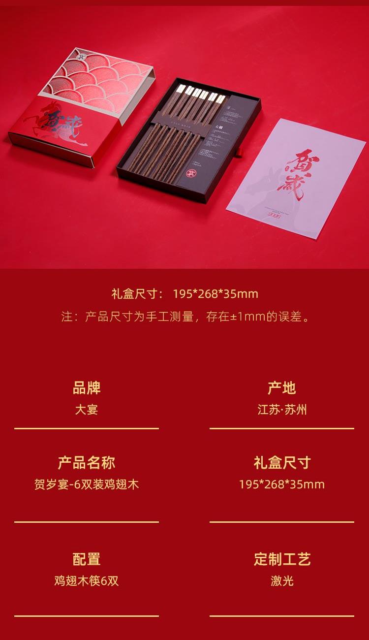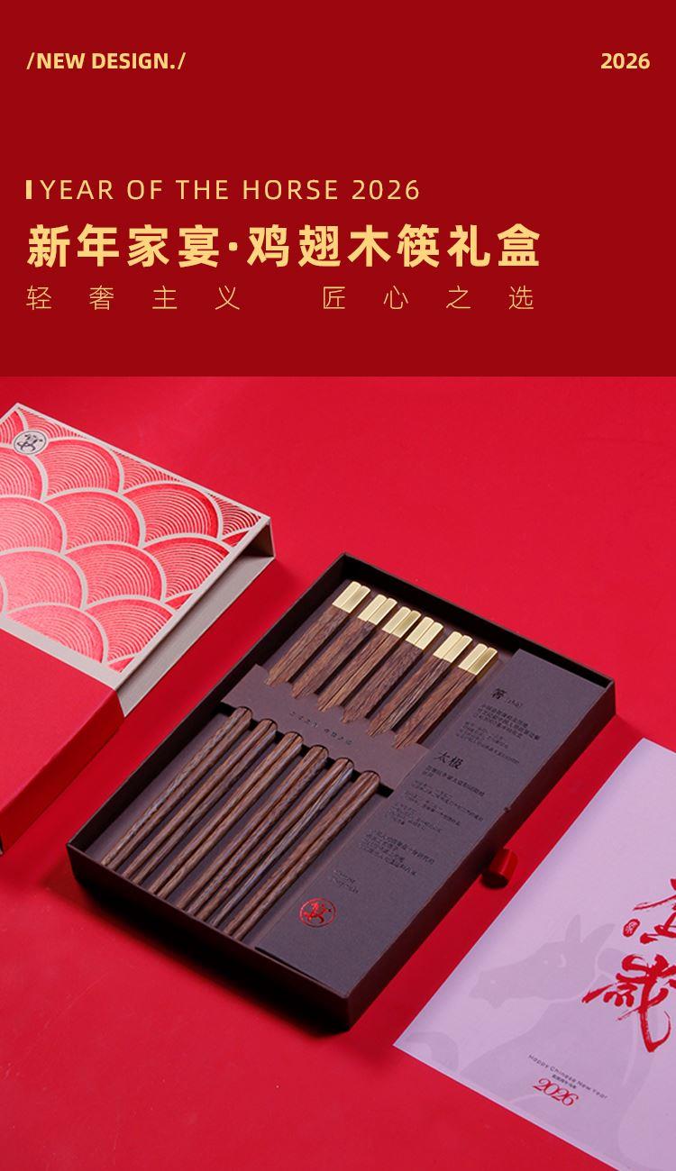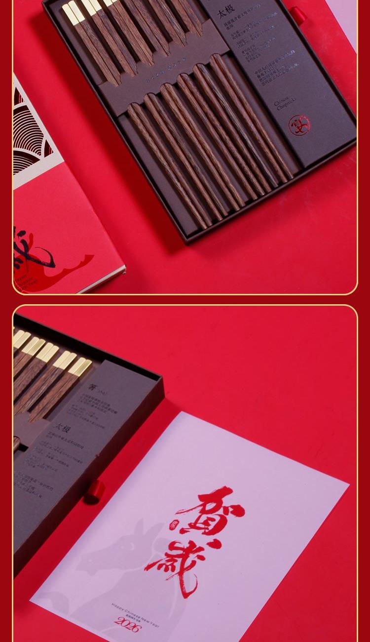 鸡翅木筷子x6 精装抽屉式礼盒手提袋*1 真贵木材鸡翅木6双新年换新筷筷头可以私人定制某府家宴 不限数量免费定制新年筷乐 私人订制某府家宴更用心贴心