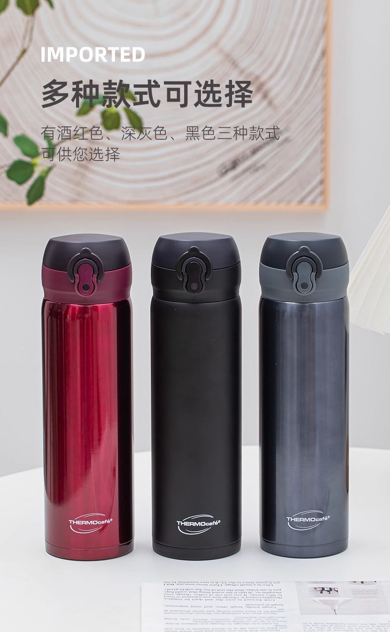 颜 色: ALB黑色 BGD红色 CGY灰色 容 量:500ml 类 型:不锈钢弹盖杯 定 制:可以定制 材 质:304 保 温:6小时约60°C 保 冷:6小时约11°C以下