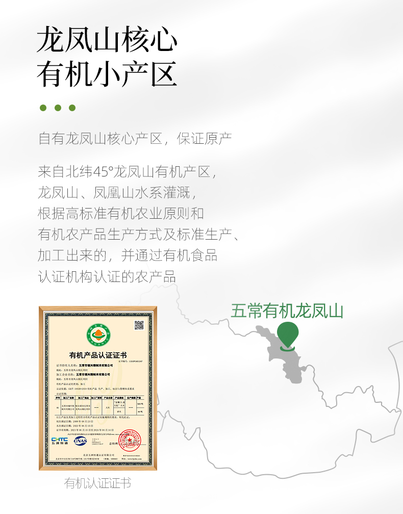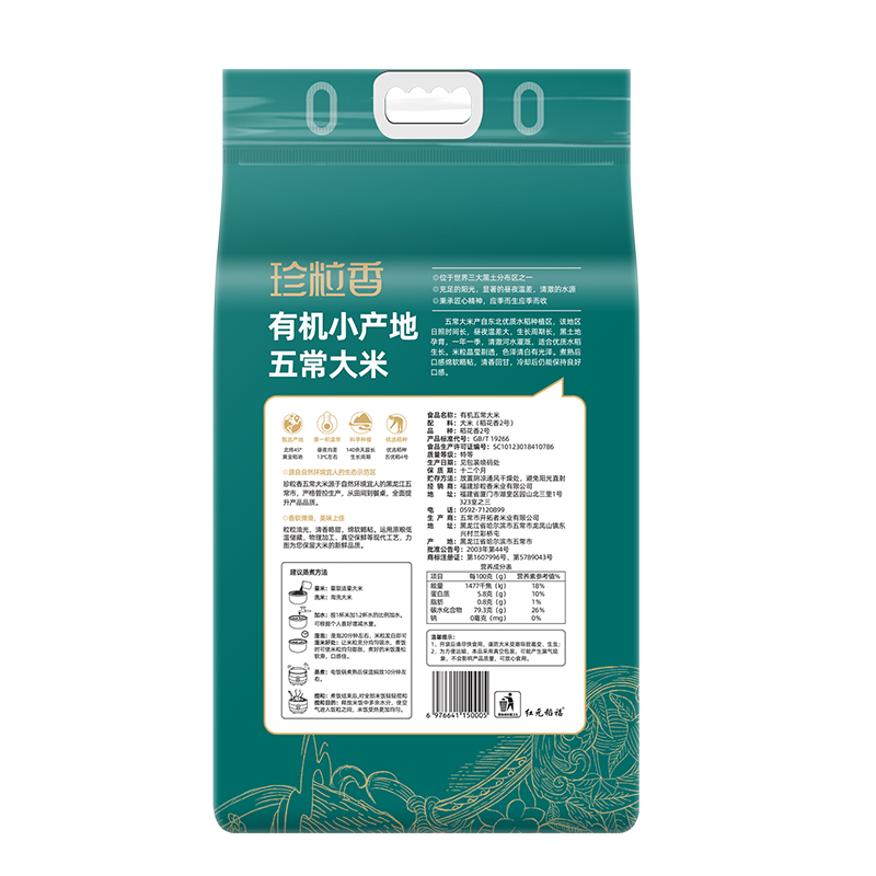 产品规格:5kg 产品包装:袋装+内真空袋 产品尺寸:245*95*500mm 条 码:6976641150005 推荐理由: 1、限定五常有机龙凤山小产区 2、有机认证安全更放心 3、原生态种植,不施化肥,不打农药 4、独立真空包装,避免营养流失