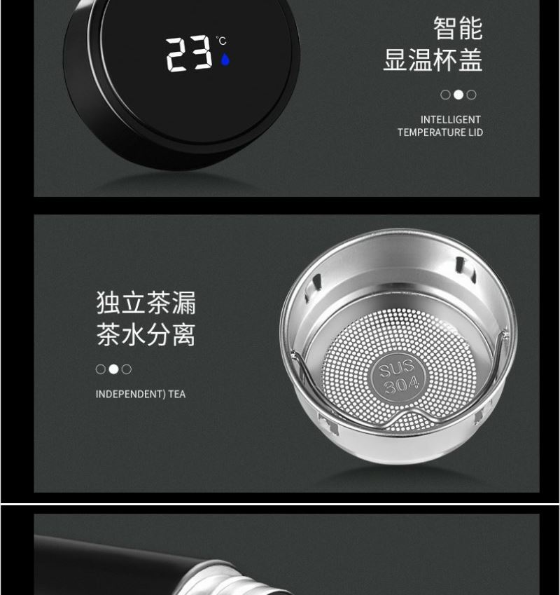 材质: 内胆材质304 杯盖PP (加温度显示) 容量: 500ML 外盒: 28.5×6.7×6.7cm