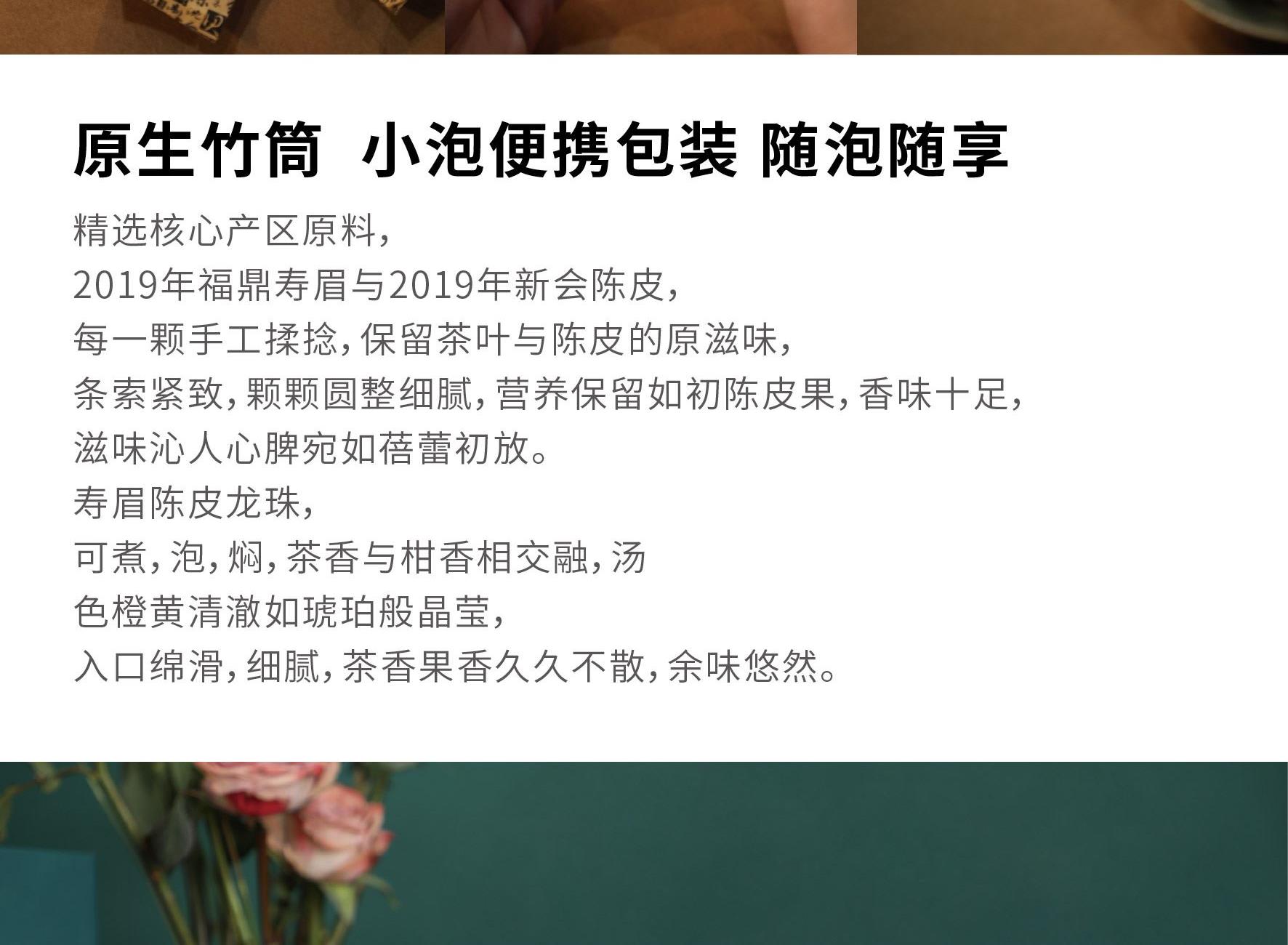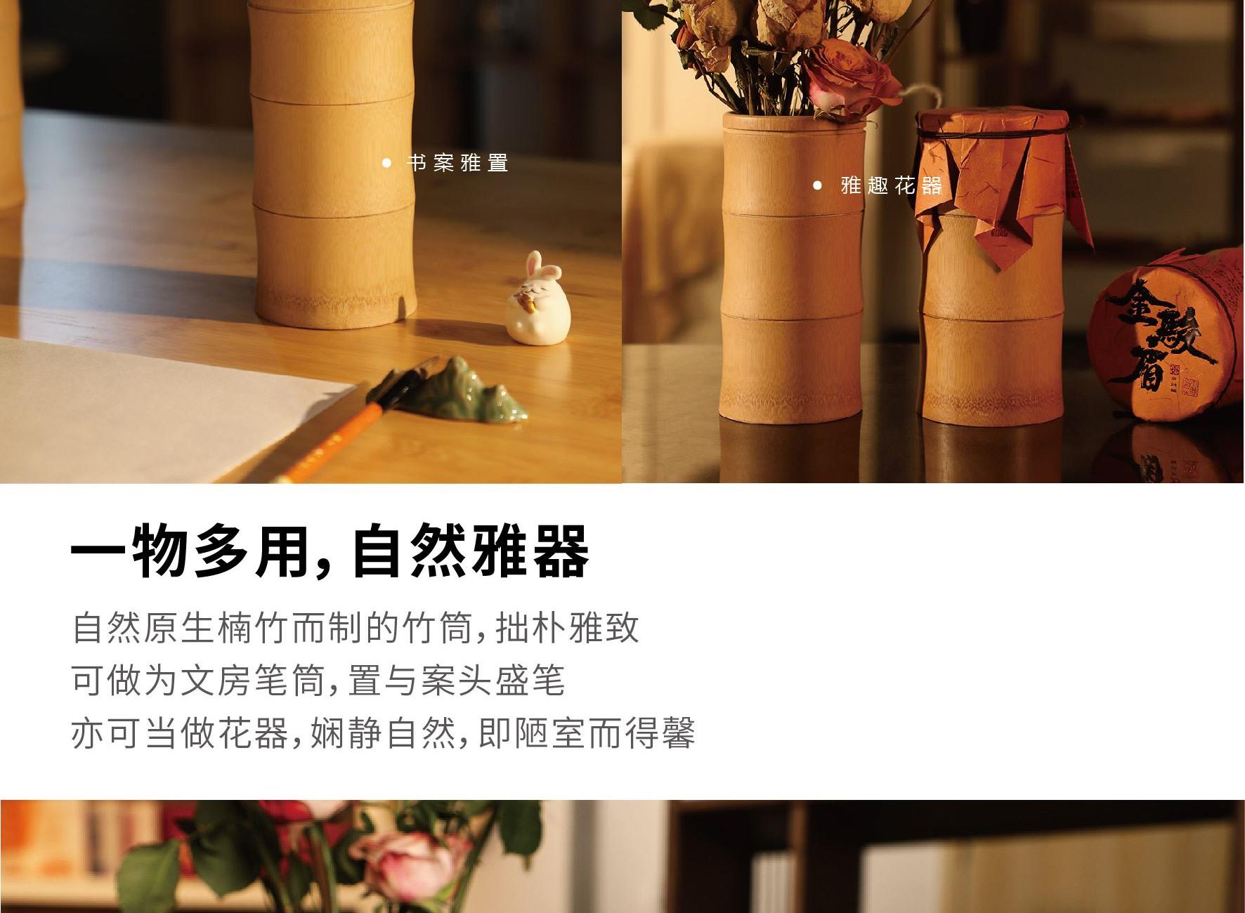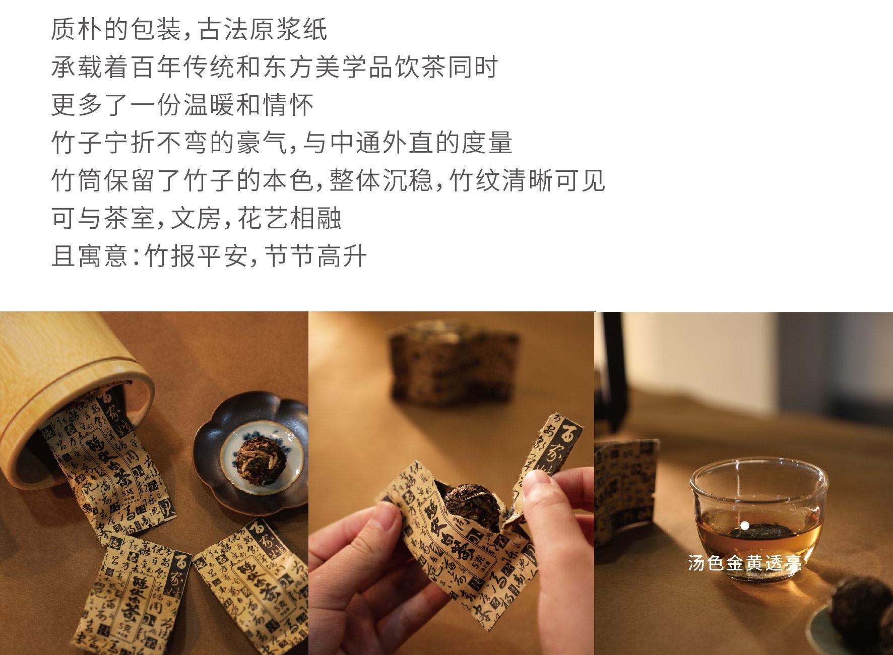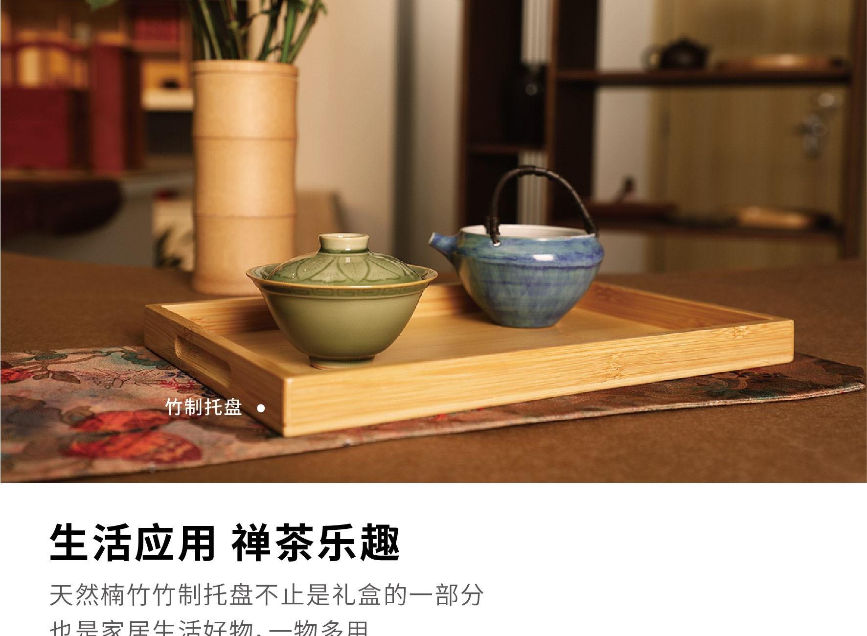礼盒尺寸:320*125*215 mm 手提袋尺寸:330*135*245 mm 品茗杯尺寸:口径55 mm、高40 mm 竹筒尺寸:195*95 mm(自然原生竹筒,直径有微差) 内胆尺寸:75*75*92 mm 公道杯尺寸:85*75*105 mm 茶叶总净含量:60 g 产品配置:竹制托盘、手提袋、 旅行茶具组套装x 1(品茗杯x 3,过滤内胆x 1, 玻璃公道杯x 1) 自然竹筒(花器/收纳)x 1 陈皮白茶龙珠60 g( 5 g x 12袋) 产品材质:楠竹、陶瓷