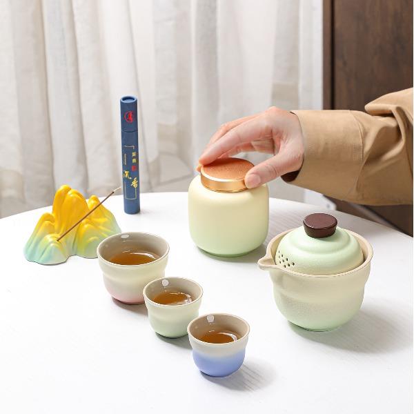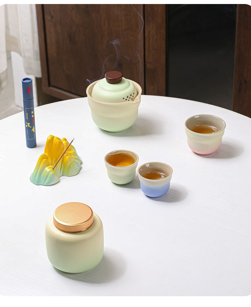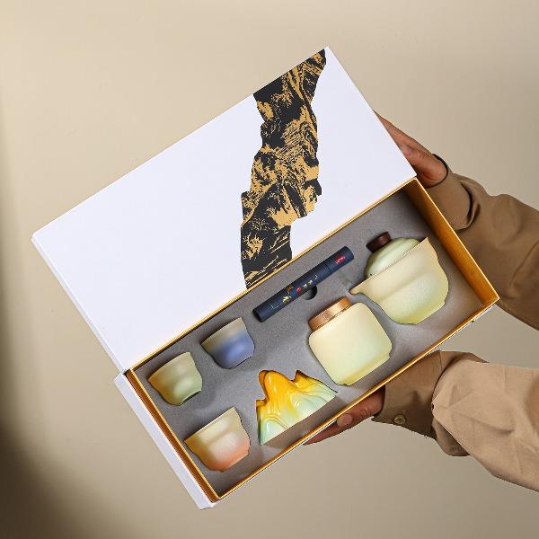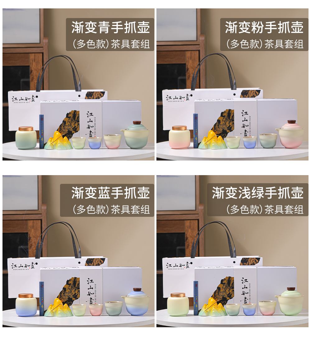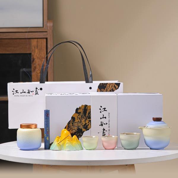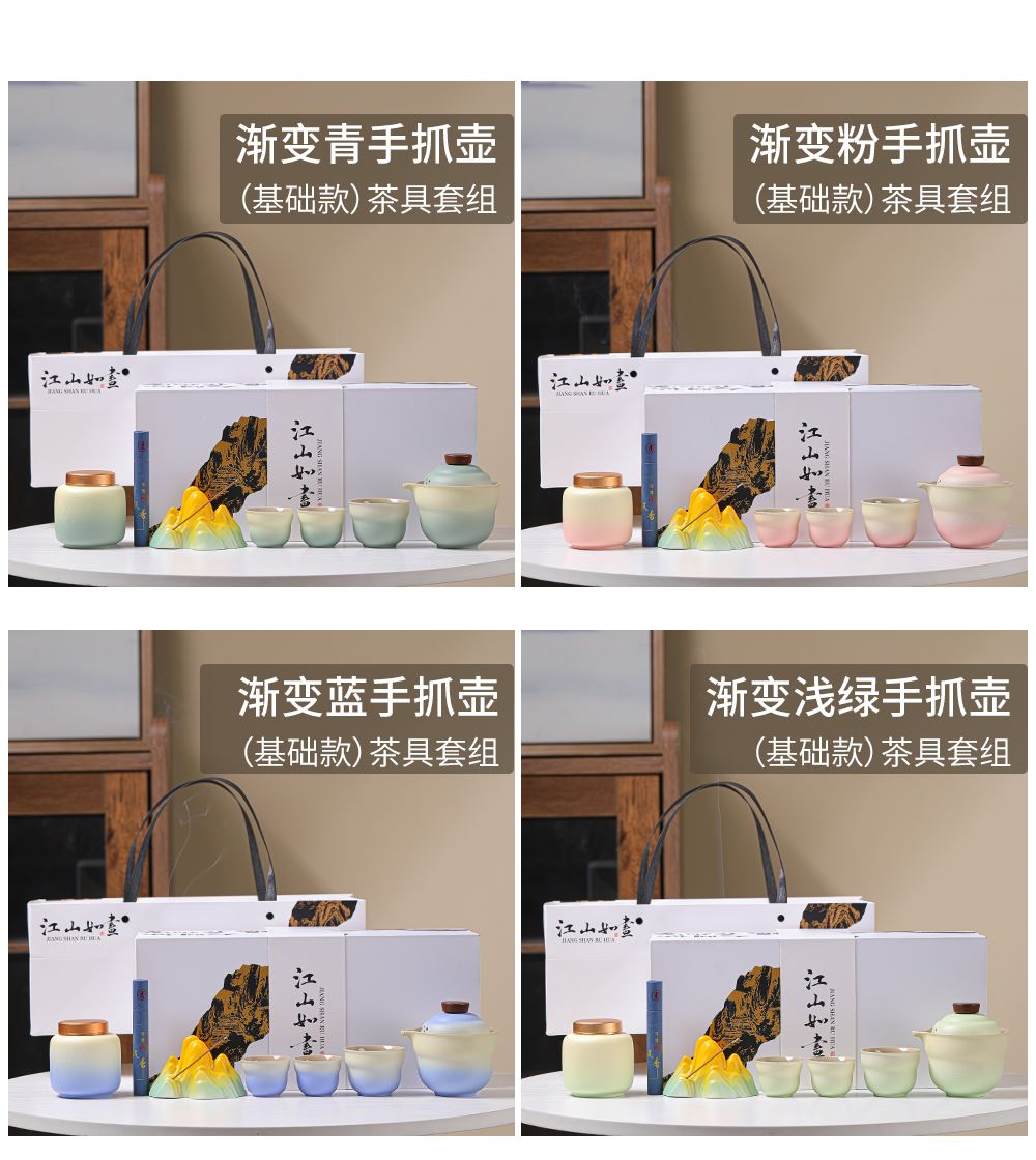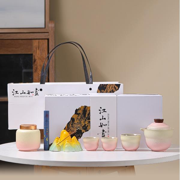 壶:10*9.5厘米170ml 品茗杯:5*3.7厘米40ml 茶叶罐:7*7厘米65ml 礼盒:36*12*12厘米 天然矿物釉,高温烧制无铅镉 ,精致便携, 搭配礼盒包装,自用赠礼两宜,瓷胎密实不吸茶香,久用更显韵味,以茶汤的甘醇,唤醒内心的宁静。