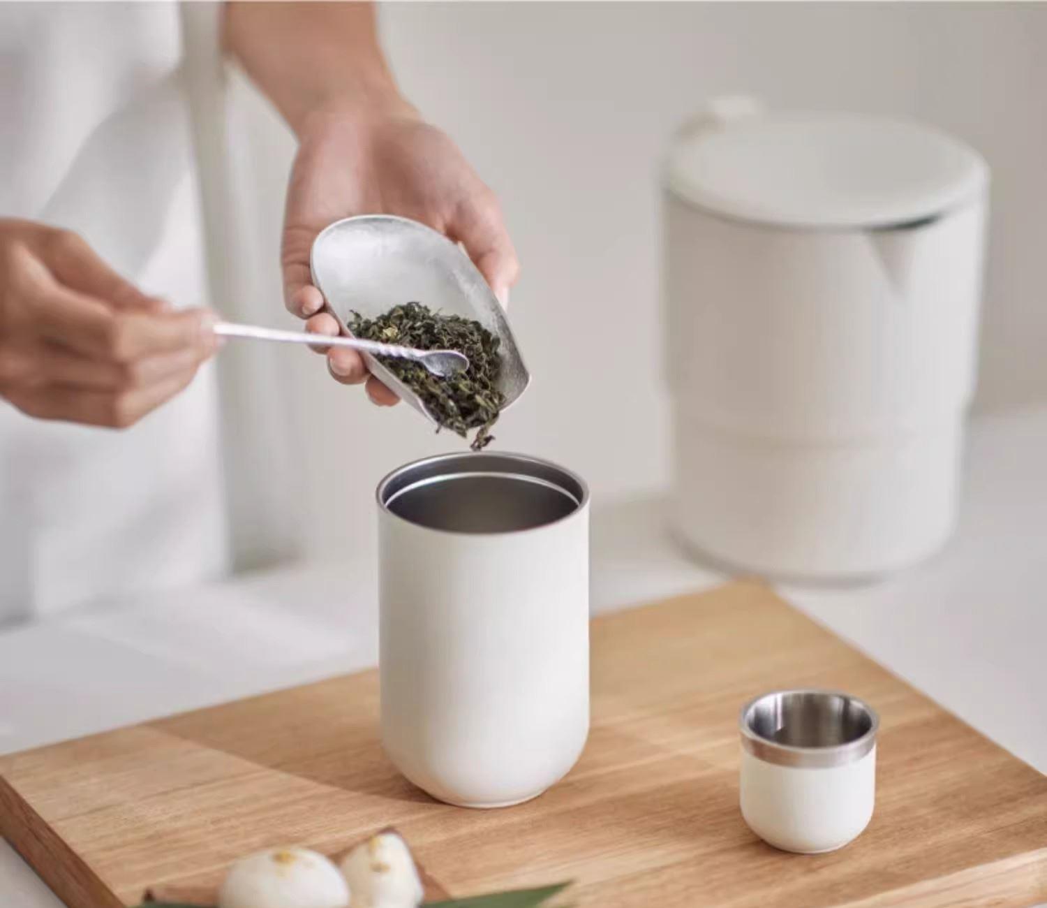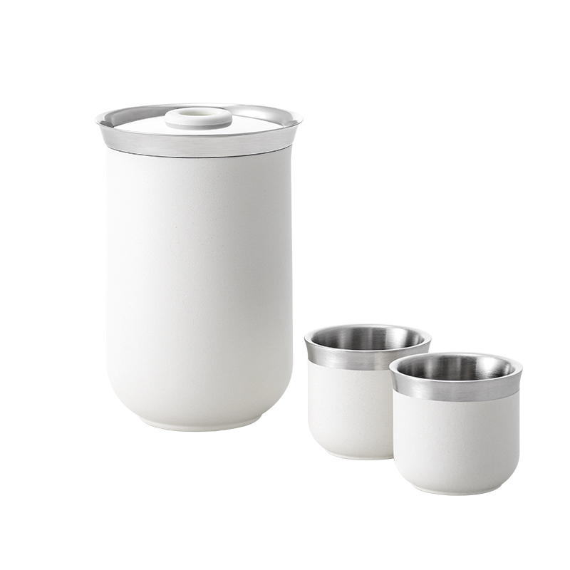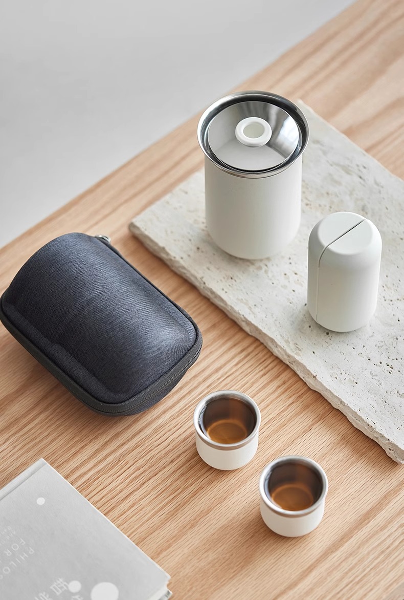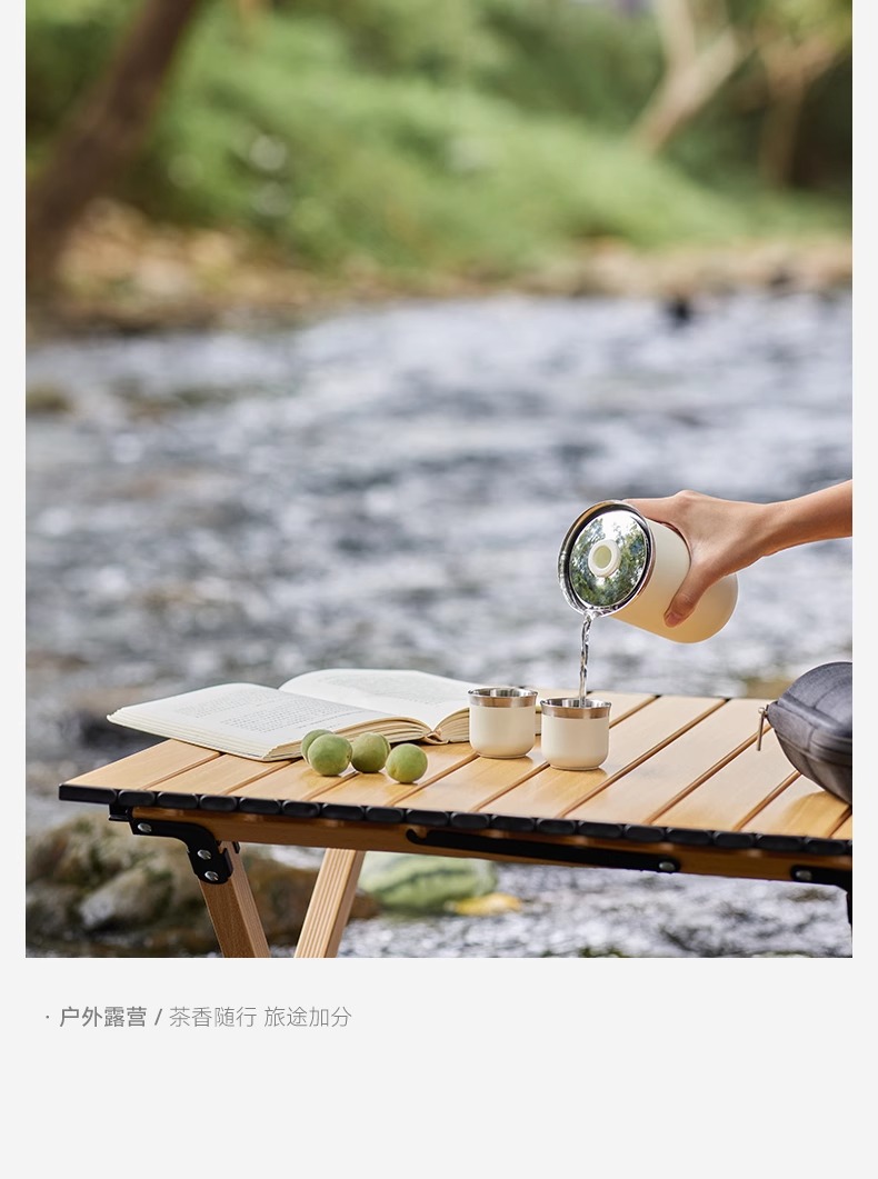 颜色:陶白色 茶壶容量:380ml 茶杯容量:60ml*2 茶壶尺寸:86*86*126mm 茶杯尺寸:51*51*45mm 茶杯+硅胶套尺寸:51*51*45mm 重量:280g 包装尺寸:98*98*165mm 1. 轻巧不占位,出行易携带 2. 采用316不锈钢,,比其他材质更安全持久耐用