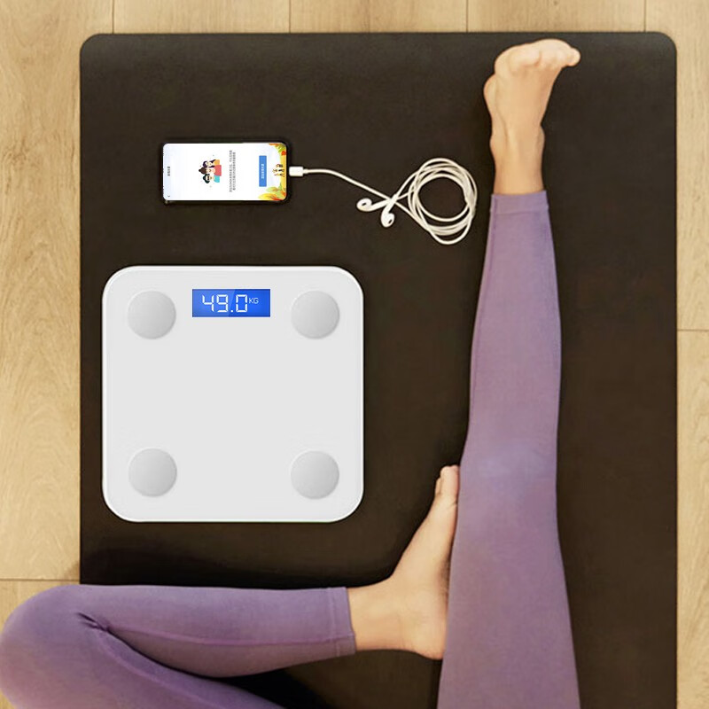 型号: HT-03ES-B 颜色:白色 材质:钢化玻璃 尺寸:26*26*2cm 屏显:液晶屏显 利用秤体表面的电极片与用户的双腿接触,通过一定的安全电流,测量人体电阻(bio-impedance).然后基于输入的用户数据和测量得到的人体电阻,使用我们在广泛实验的得到的公式,测量人体脂肪百分比、人体水分百分比、人体肌肉百分比、骨骼重量等人体成分。