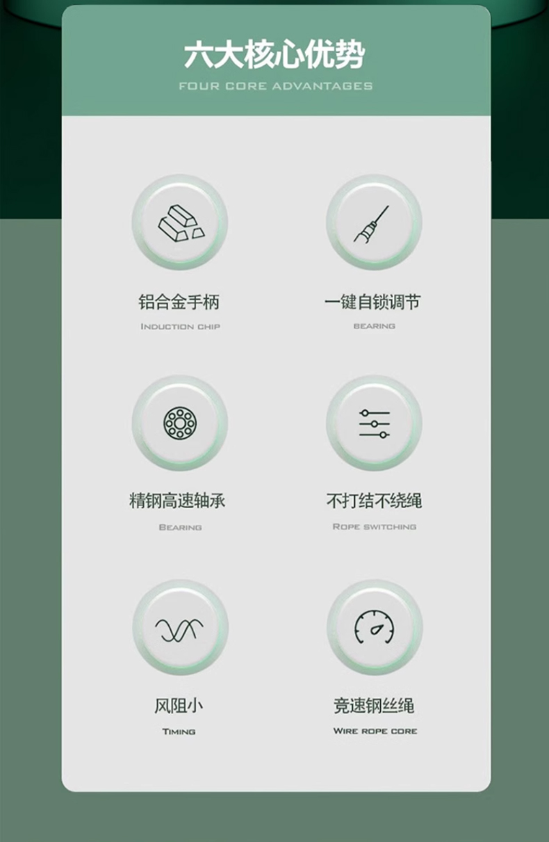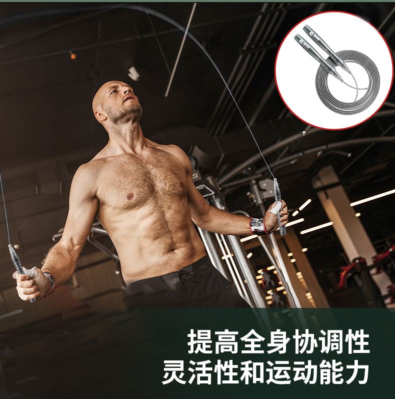 军工级强度, 49股高碳钢丝芯提供抗拉强度,耐暴力抽打、抗变形,寿命远超普通跳绳