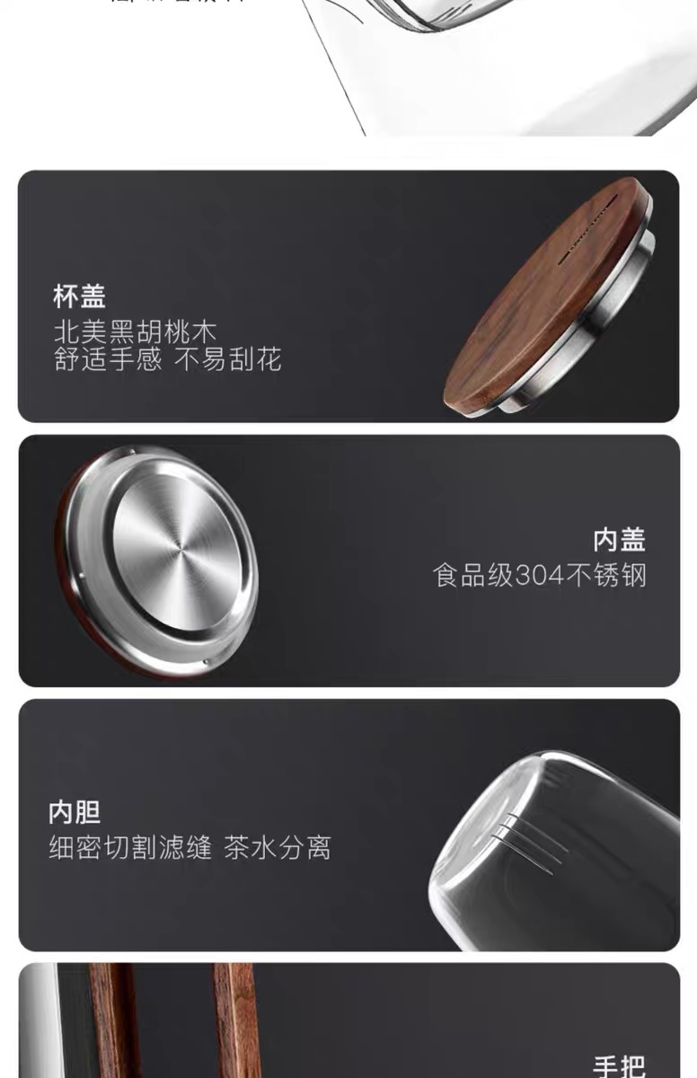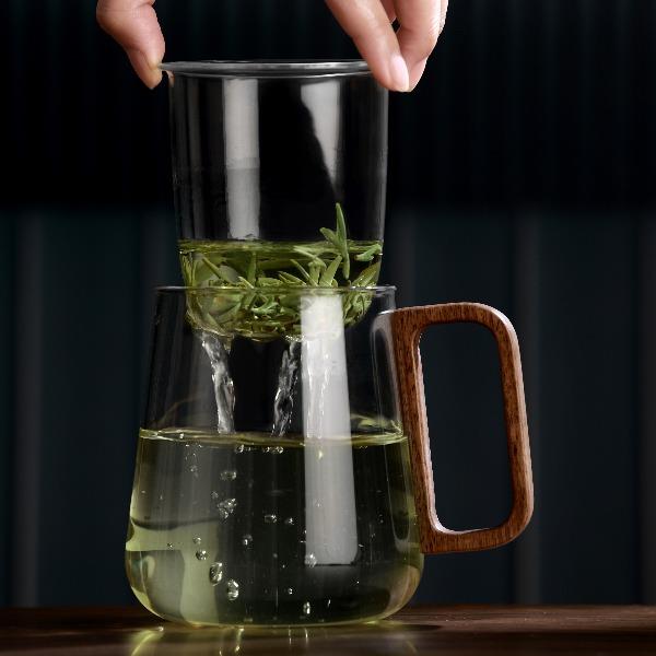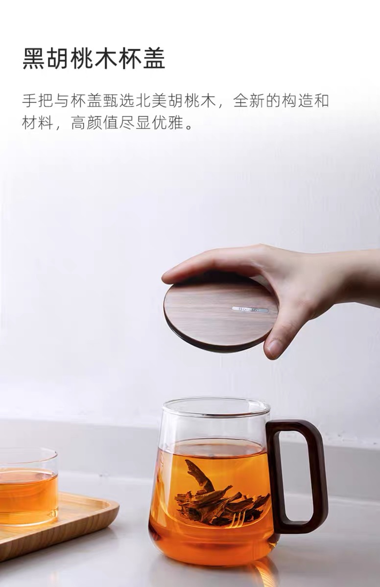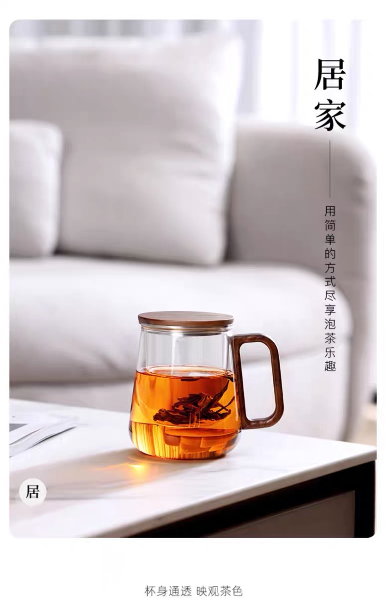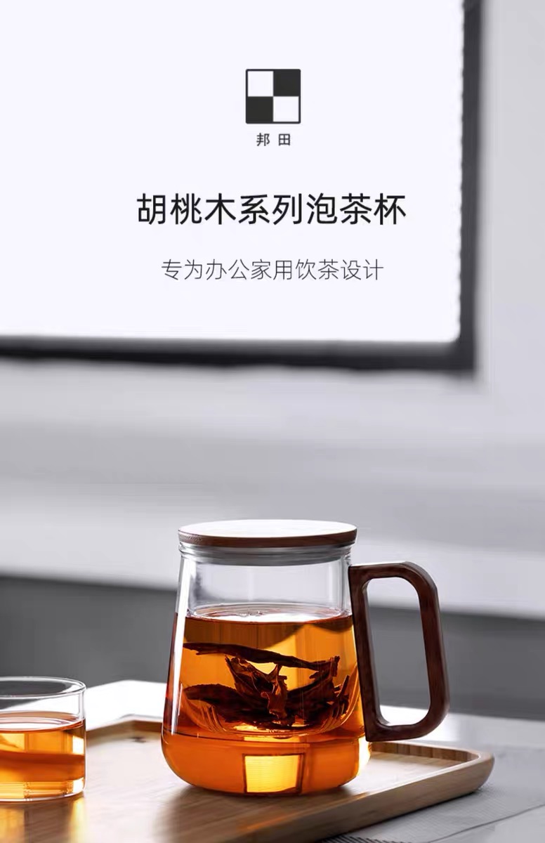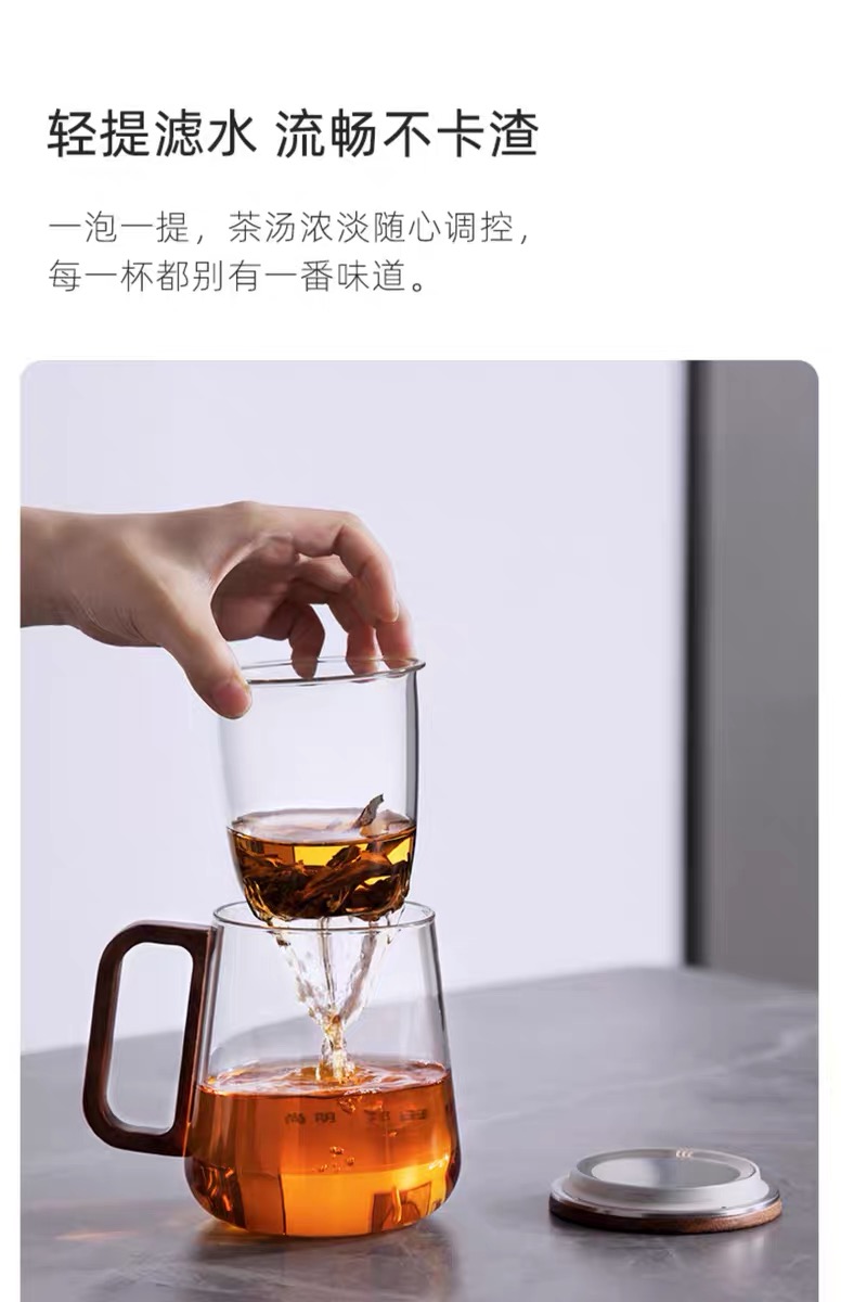 • 尚明邦田胡桃木玻璃个人杯茶水分离杯BC12办公杯550mL