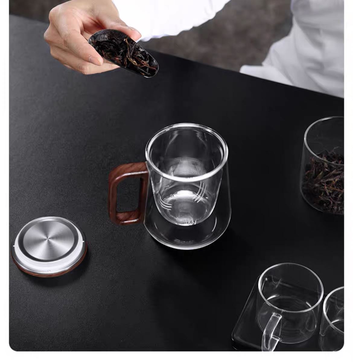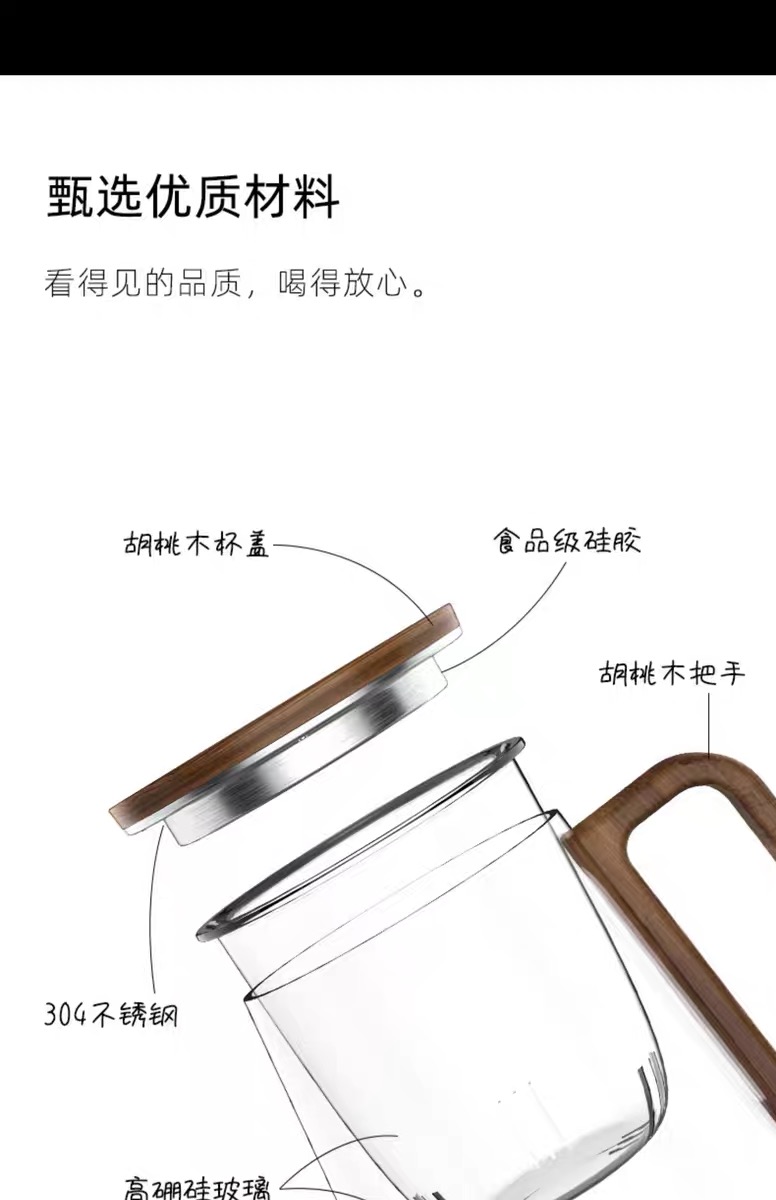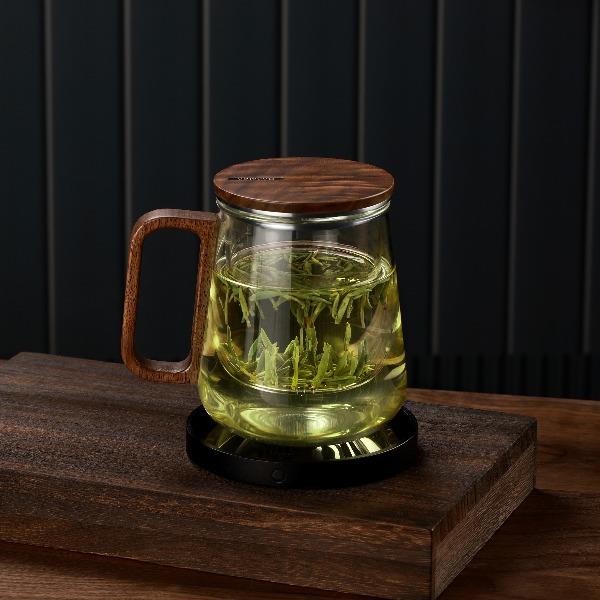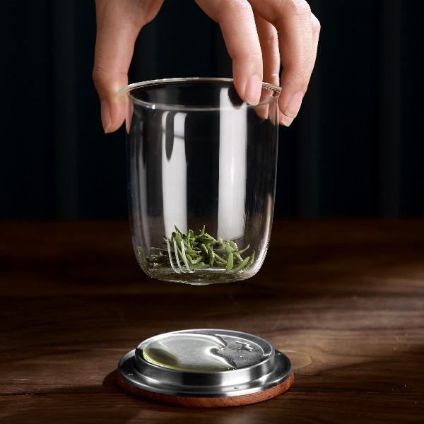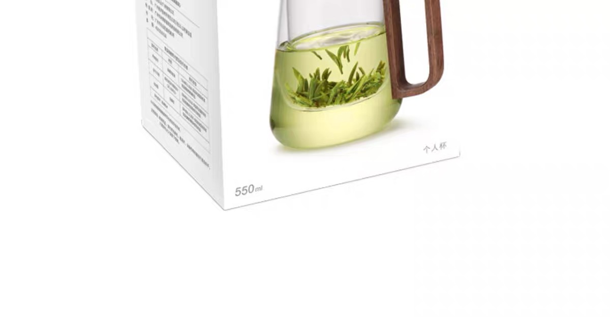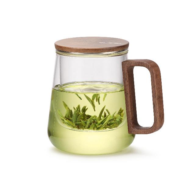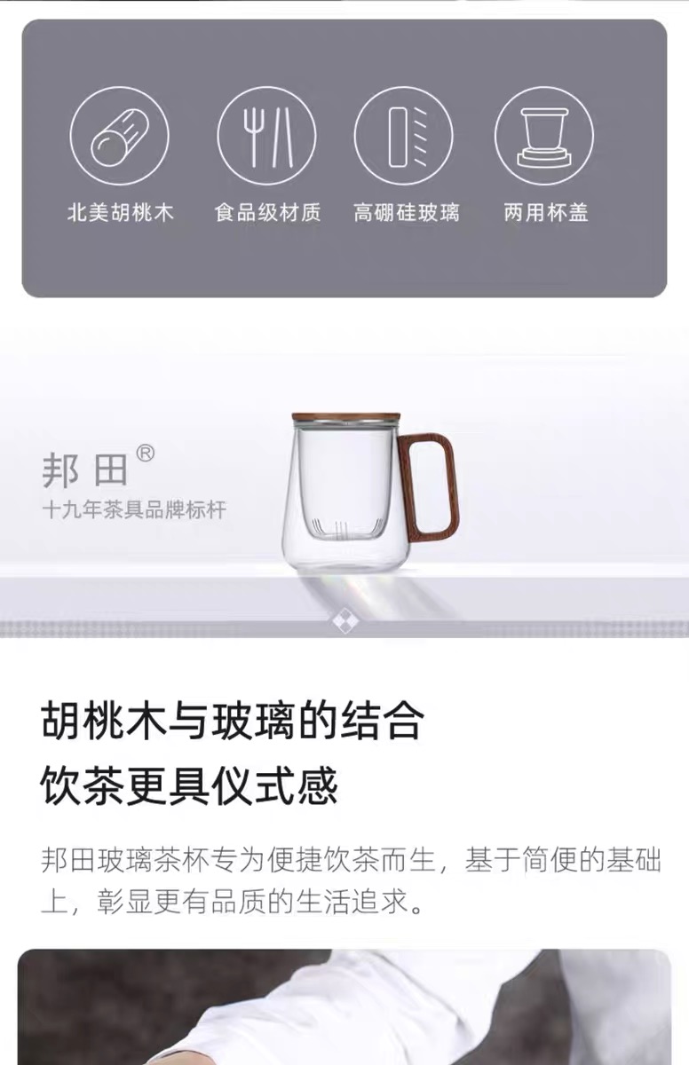 • 尚明邦田胡桃木玻璃个人杯茶水分离杯BC12办公杯550mL