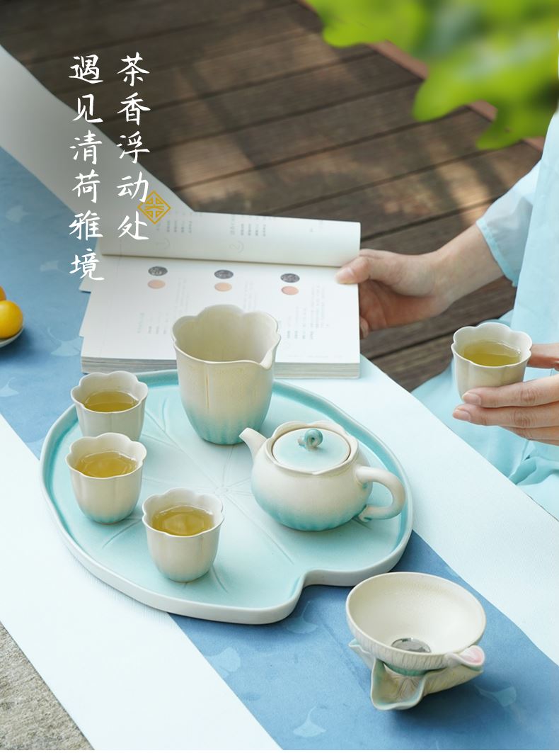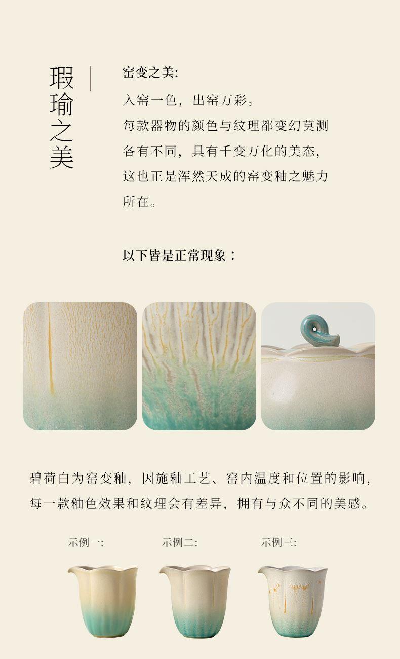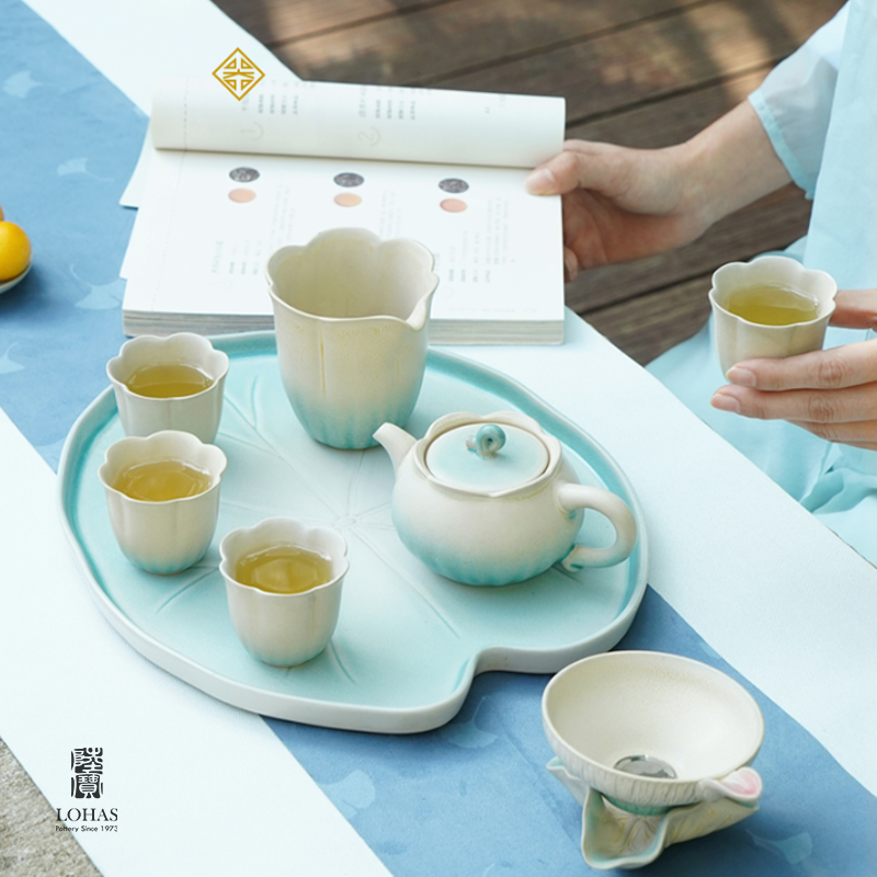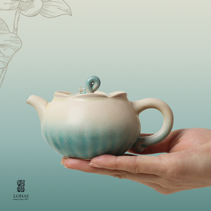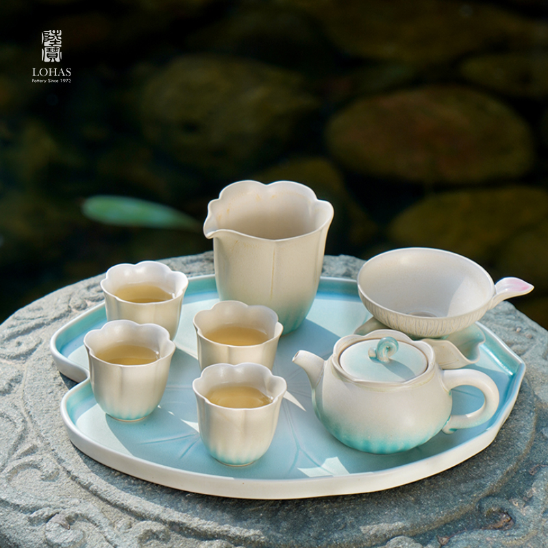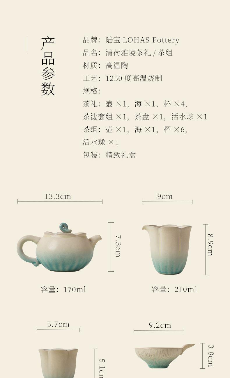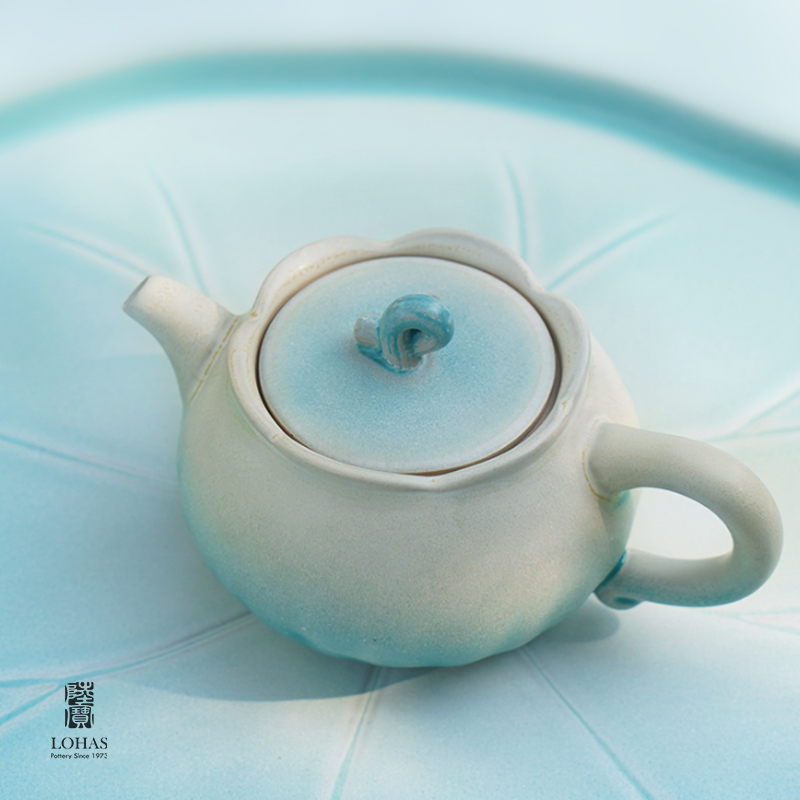 陆宝以荷为创作灵感,将它的自然形态凝练于器物之中,荷花化为壶、海、杯,荷柄化作壶钮,荷叶舒展为茶滤、茶盘,每一处细节,皆是对荷之美的深情雕琢,栩栩如生,妙然天成。窑变釉碧荷白,宛如绿荷与白莲的交融,清雅脱俗,仿佛将一池荷塘的静谧与诗意,悄然带入茶席之间。 颜色:碧荷白 容量:壶170ml