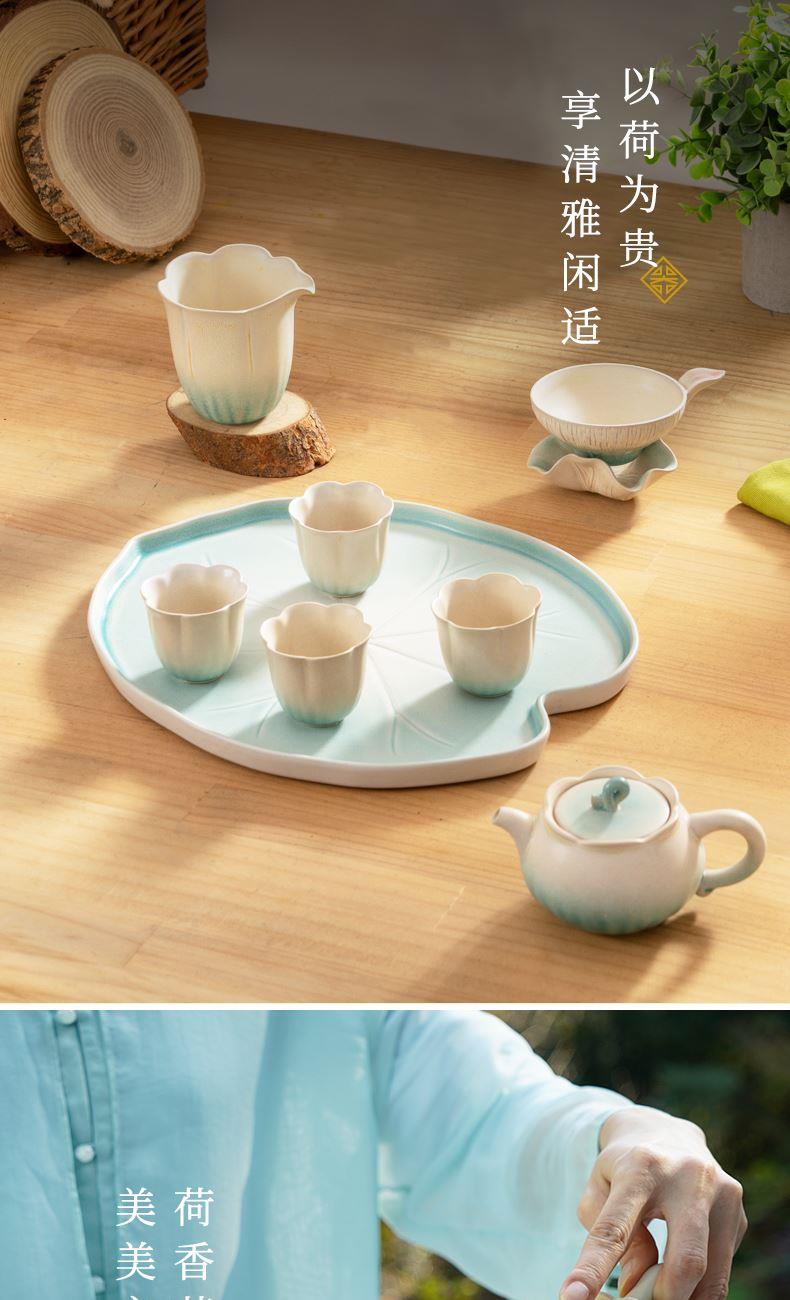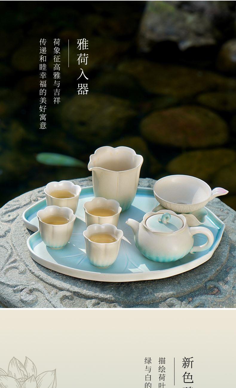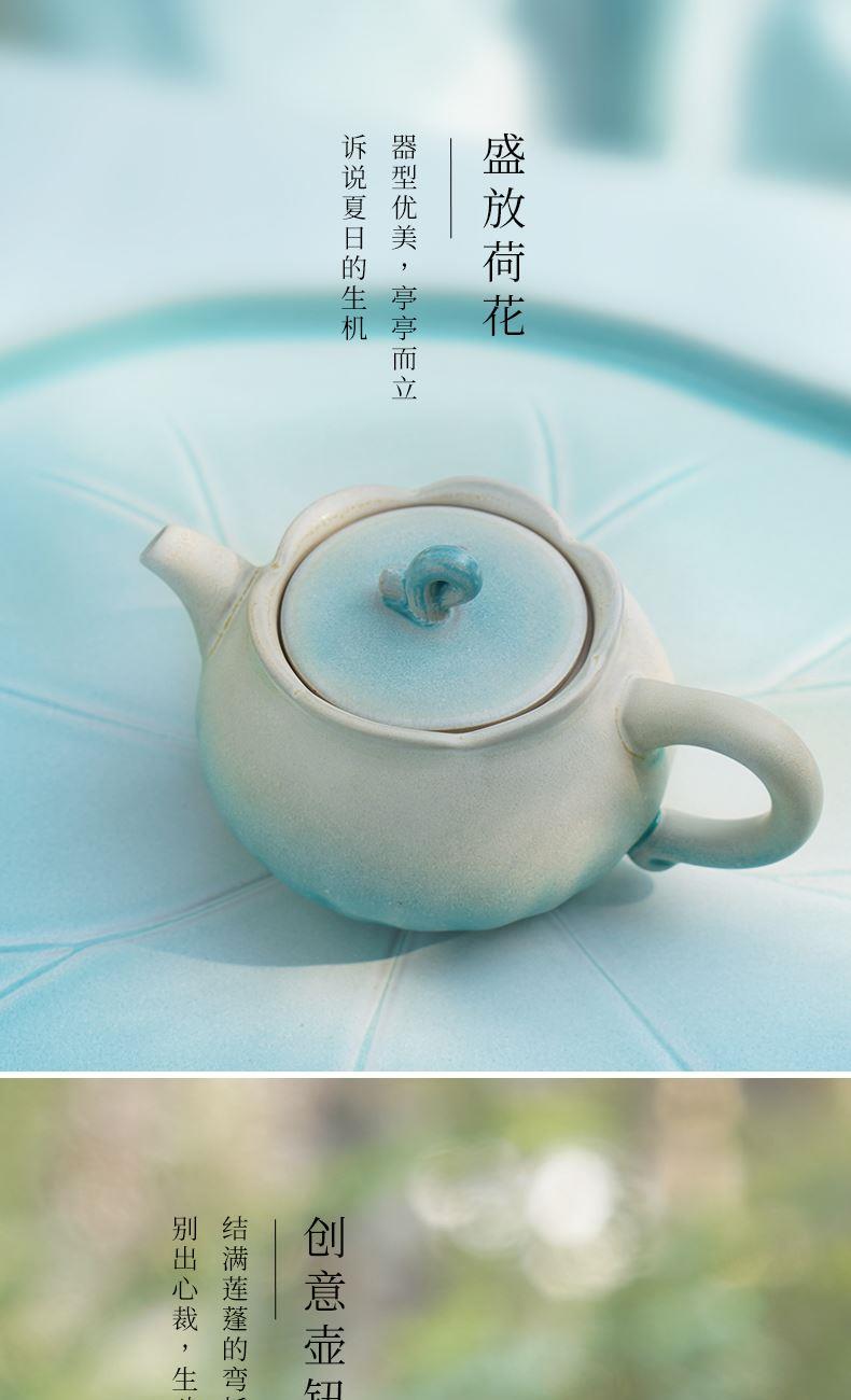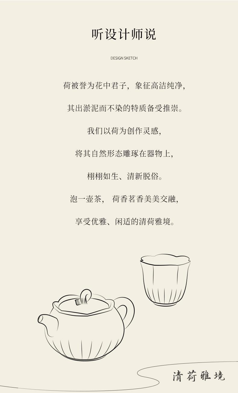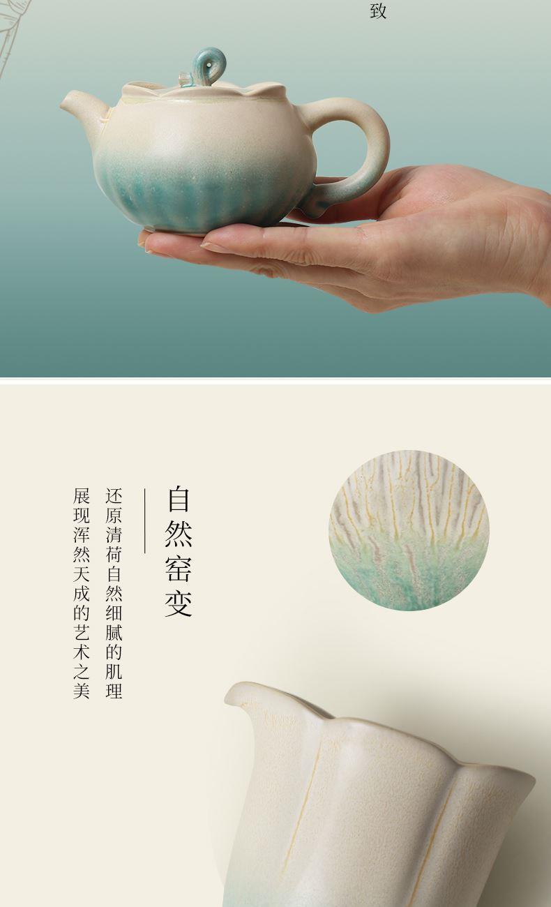 陆宝以荷为创作灵感,将它的自然形态凝练于器物之中,荷花化为壶、海、杯,荷柄化作壶钮,荷叶舒展为茶滤、茶盘,每一处细节,皆是对荷之美的深情雕琢,栩栩如生,妙然天成。窑变釉碧荷白,宛如绿荷与白莲的交融,清雅脱俗,仿佛将一池荷塘的静谧与诗意,悄然带入茶席之间。 颜色:碧荷白 容量:壶170ml