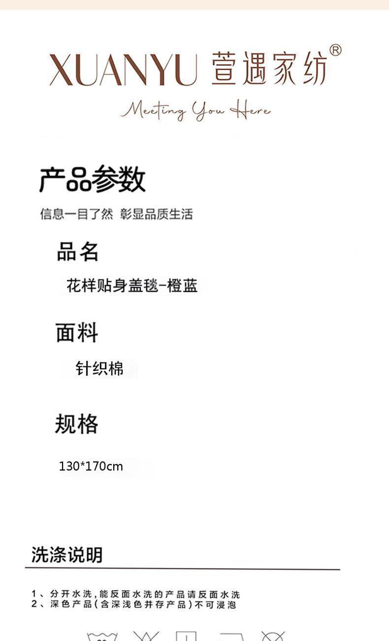 萱遇家纺花样贴身盖毯-橙蓝Q-C7092-1