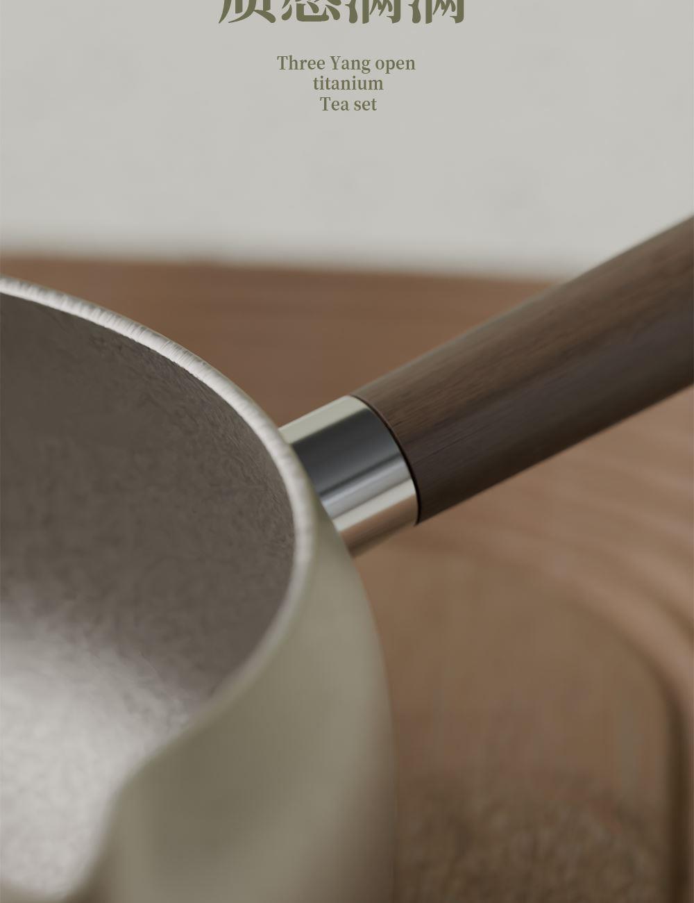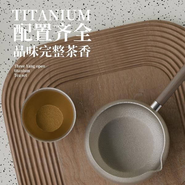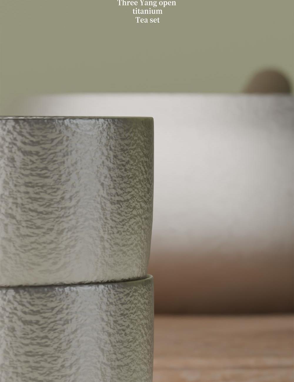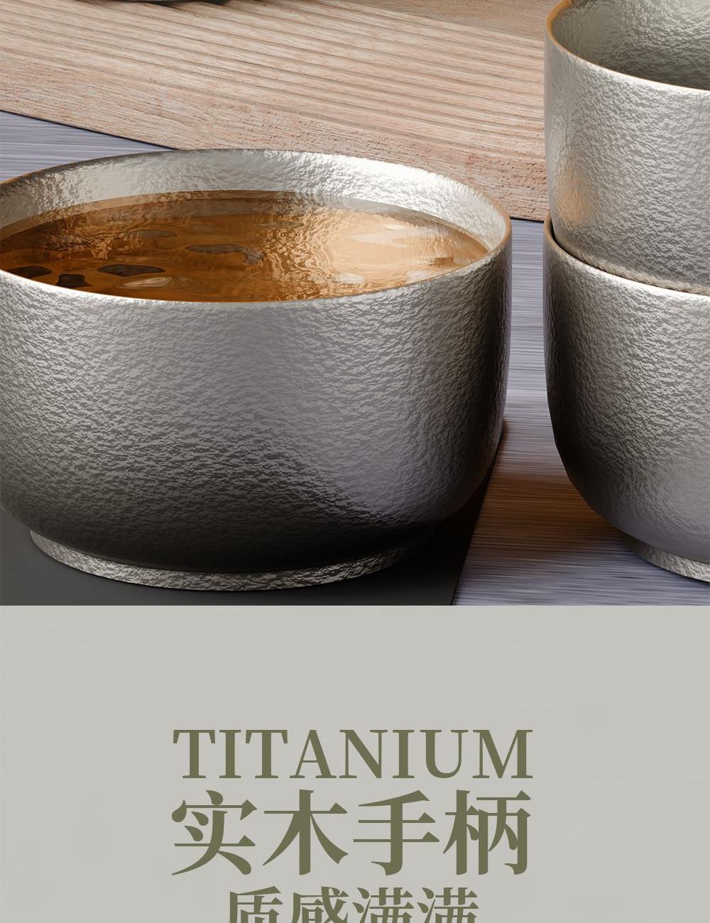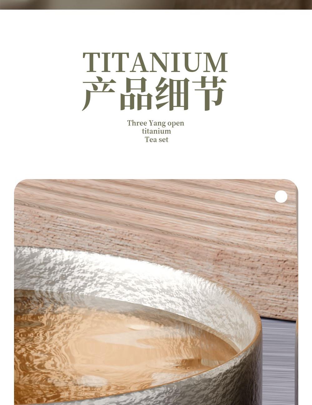 · 茶具材质: 茶盏纯钛,茶叶罐纯钛,主人杯纯钛,侧把壶纯钛