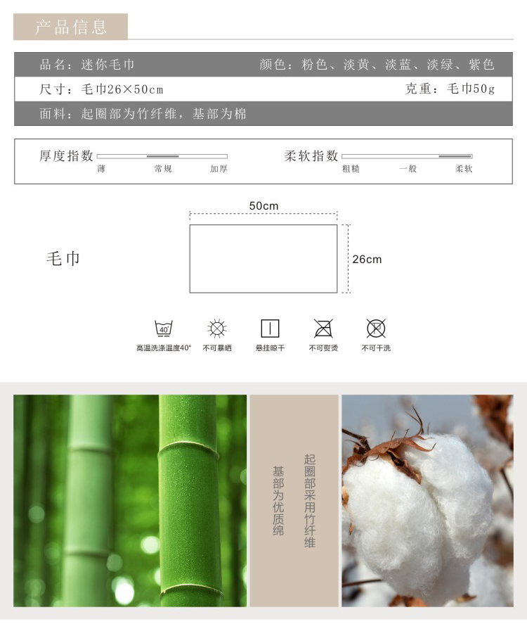 产品内含: 竹纤维迷你毛巾*1 全棉大白童巾*1 竹纤维毛巾健康亲肤 大白童巾全棉呵护