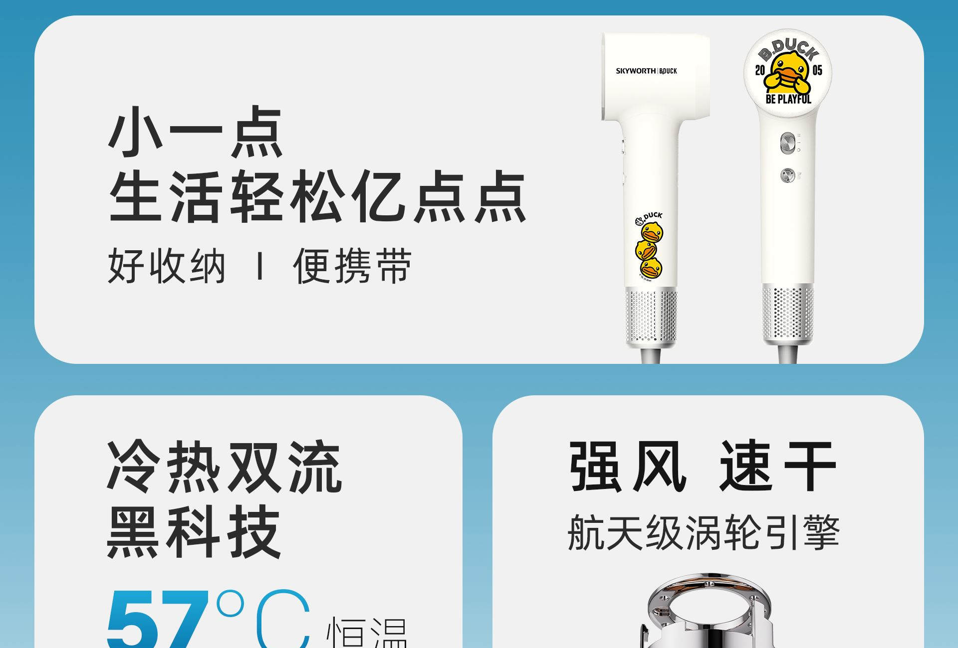 创维MINI吹风机小黄鸭联名版翠湖绿MS-CF1-GN