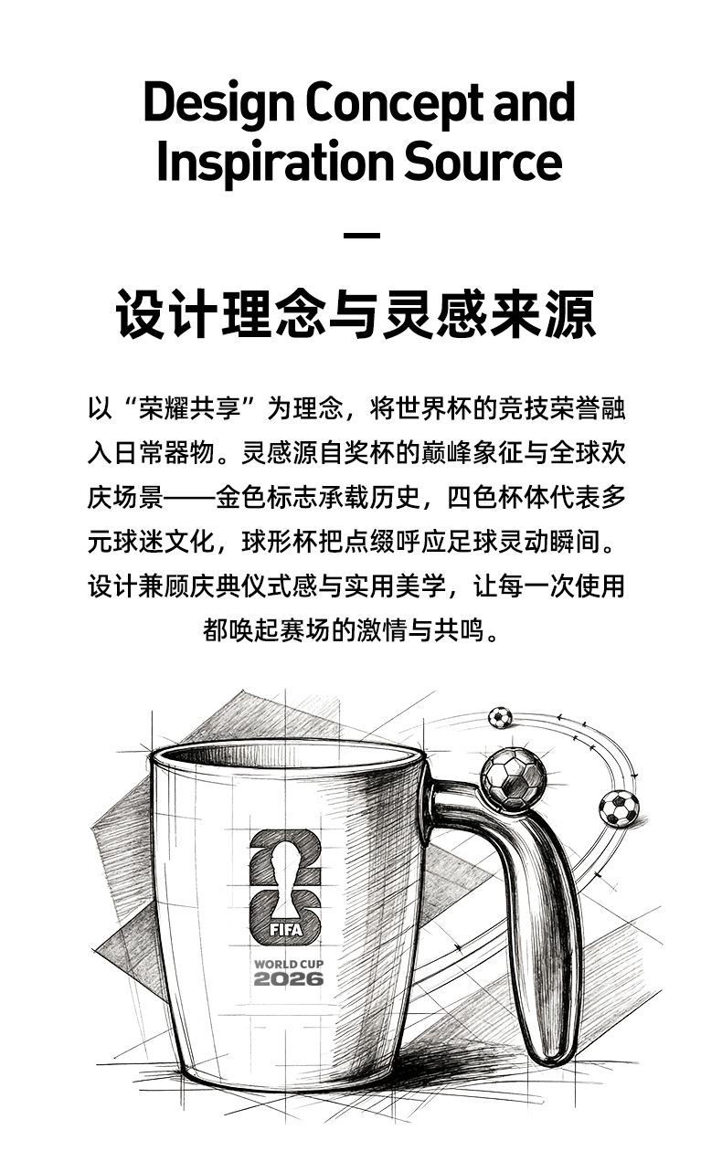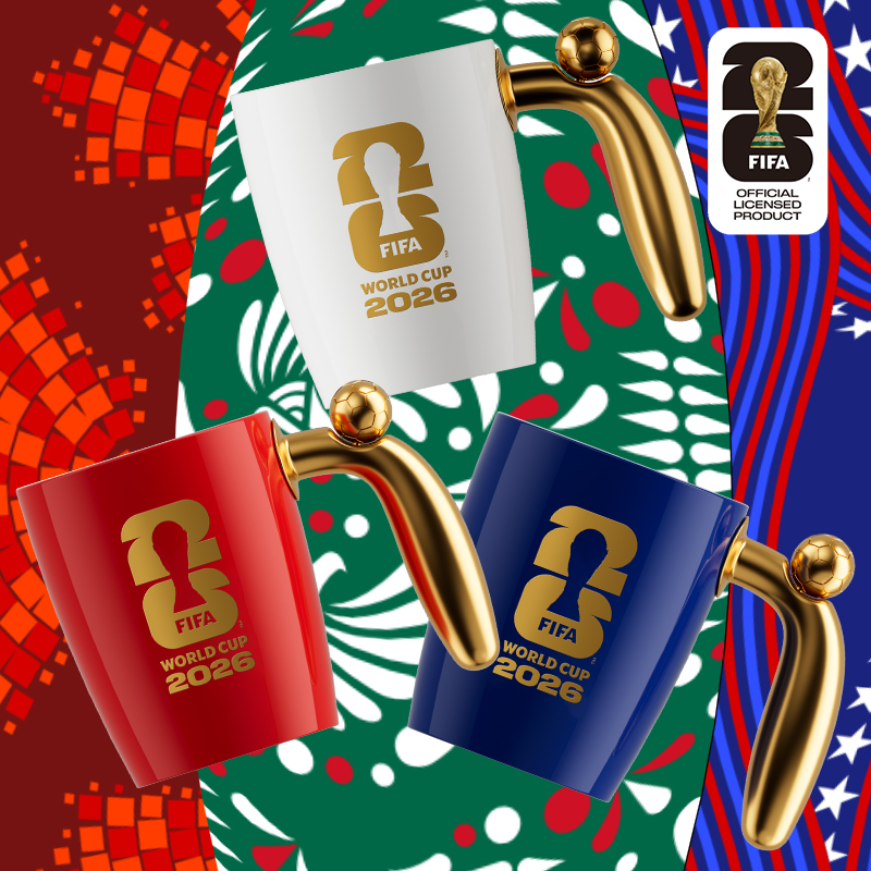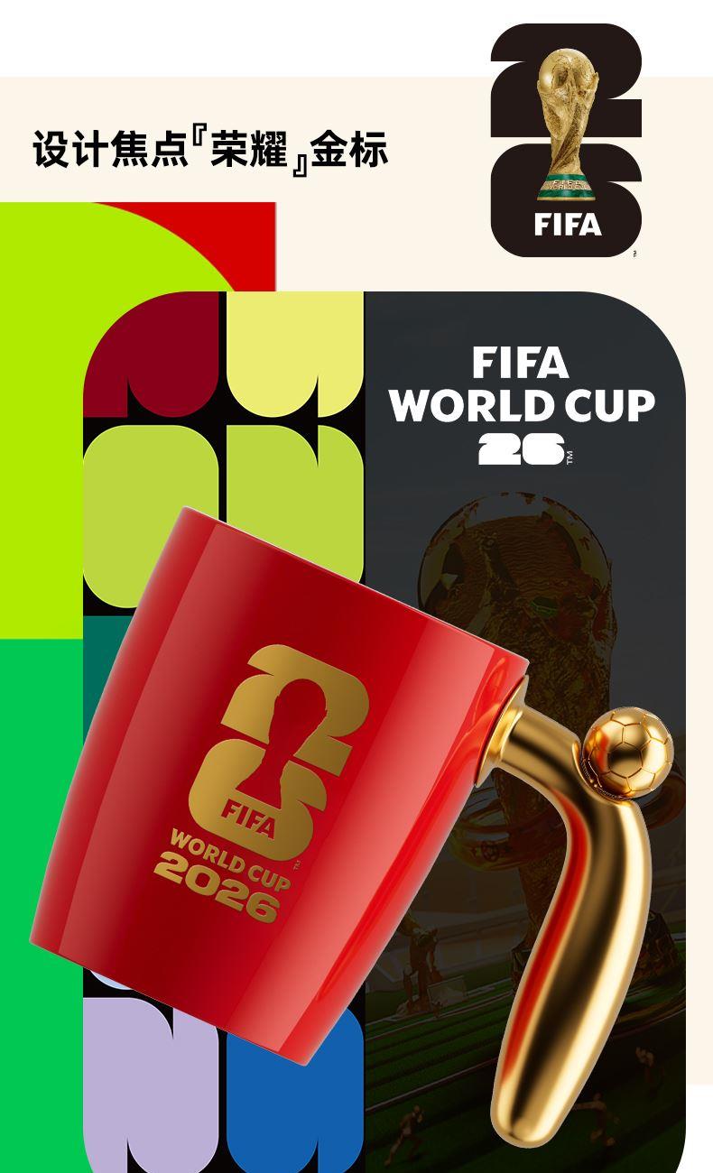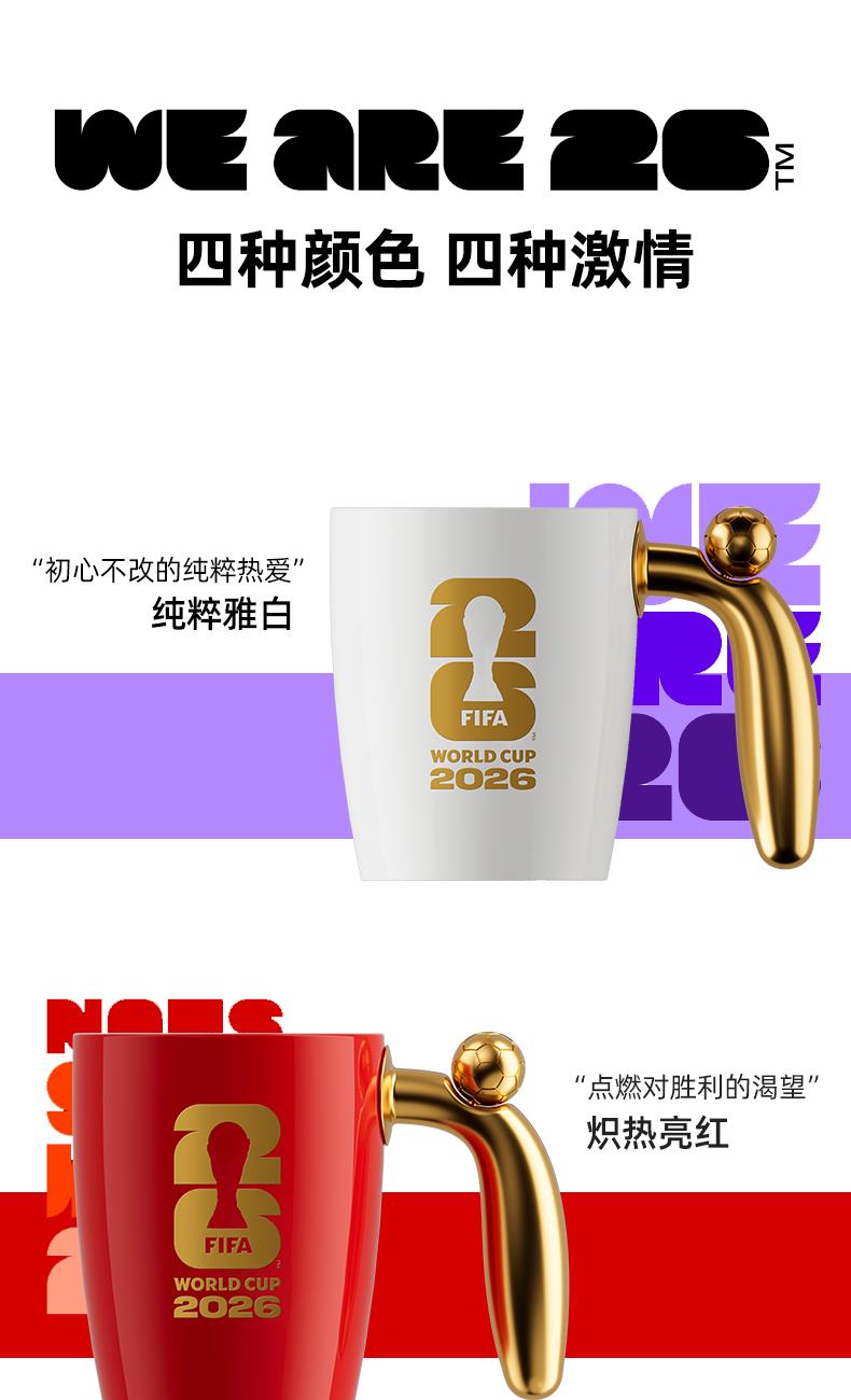 2026美加墨世界杯官方授权方 材料:陶瓷、合金 容量:420ml 产品尺寸:长145x宽110x高110mm 包装尺寸:长136x宽136x高116mm 可以转动的足球马克杯 四年一次的足球盛宴 纪念版商品
