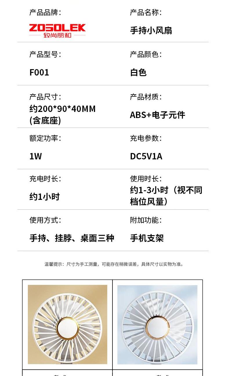 • 致尚丽和ZOSOLEK手持小风扇F001