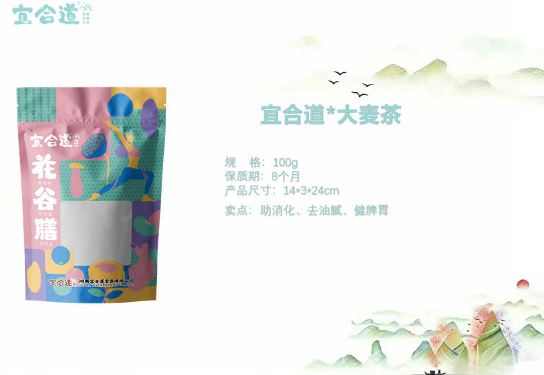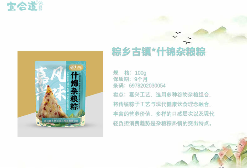 粽乡古镇*豌豆腊肉粽 100g*1 粽乡古镇*什锦杂粮粽 100g*1 广西非遗真空海鸭蛋 70g*4枚 宜合道*特级黑金枣 200g*1 宜合道*大块老冰糖 200g*1 宜合道*大麦茶 100g*1 净含量:980g 条形码:6972940013867 产品尺寸: 30*20*18cm
