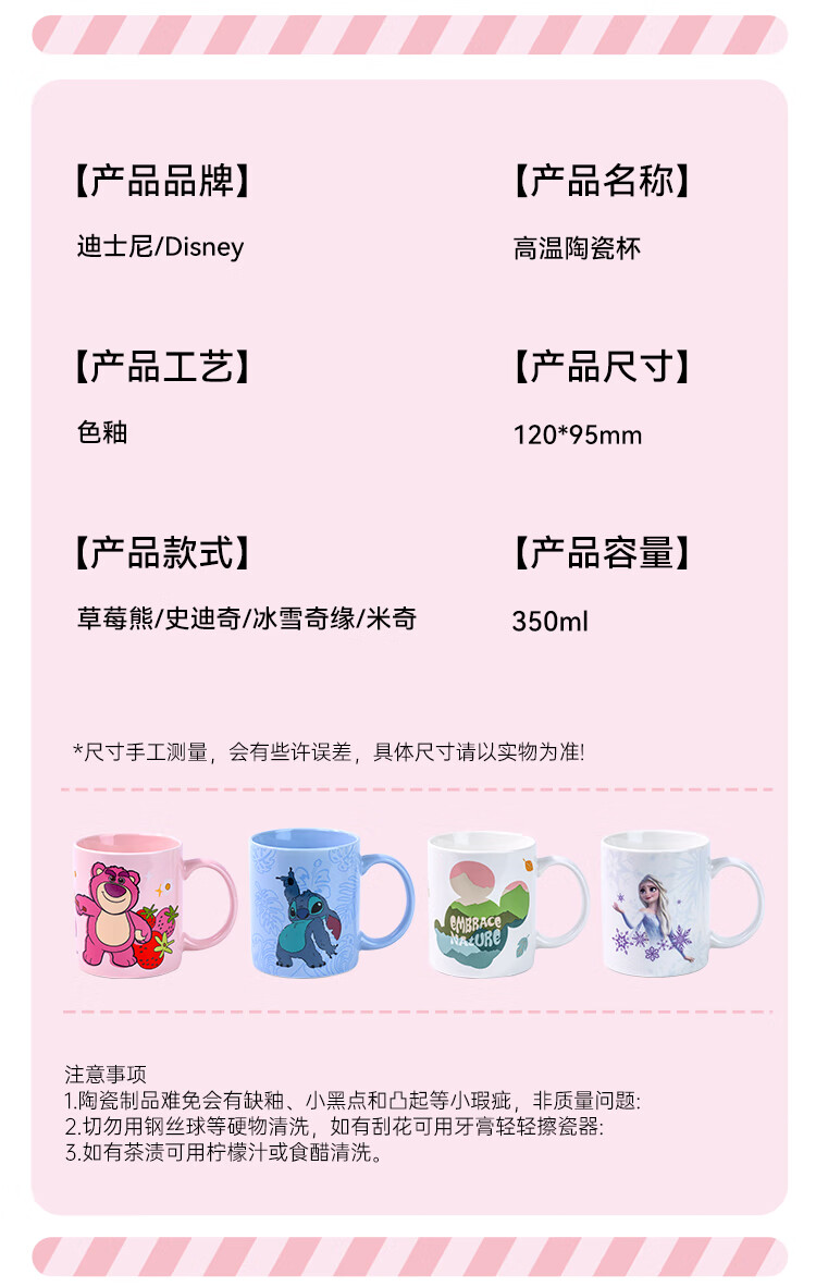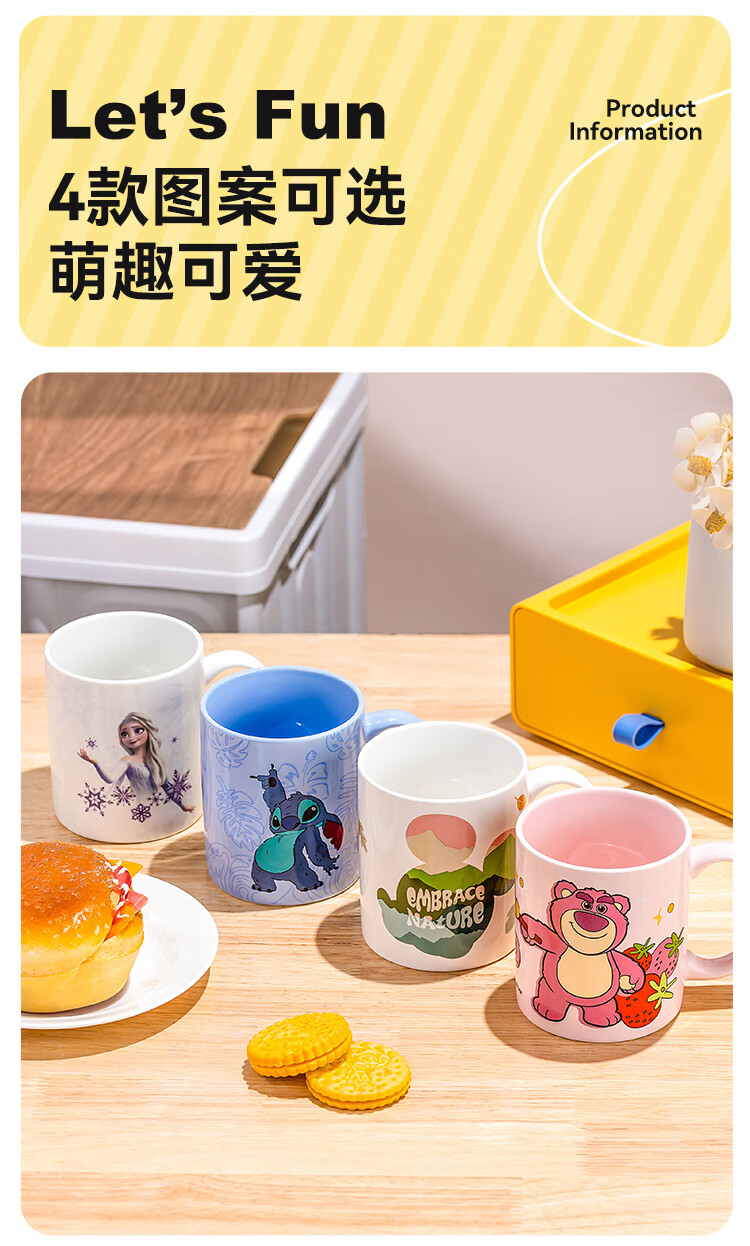 迪士尼高颜值马克杯350ml家用办公牛奶咖啡杯H10054