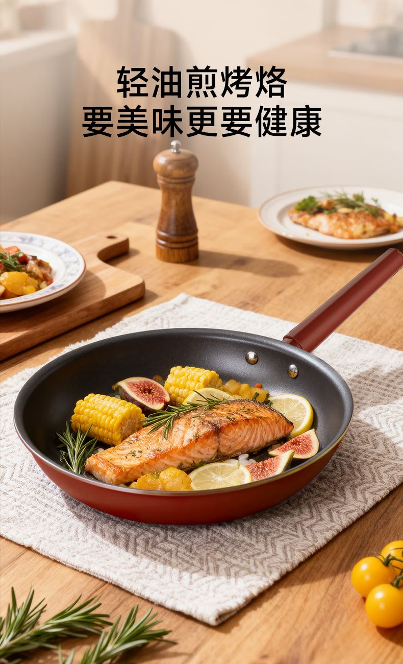 炒锅 Ø 30cm /4.5L 锅身高度:85mm 内表面 :大金不粘EK系列 底部处理 : 复底磁通底 手柄 : 铝头+电木喷硅胶漆 锅盖 :玻璃盖304 煎锅 Ø 26cm / 2.3L 锅身高度:50mm 内表面 :大金不粘EK系列 底部处理 : 复底磁通底 手柄 : 铝头+电木喷硅胶漆 奶锅 Ø 16cm / 1.5L 锅身高度:79mm 内表面 :大金不粘EK系列 底部处理 : 复底磁通底 手柄 : 铝头+电木喷硅胶漆 锅盖 :玻璃盖304
