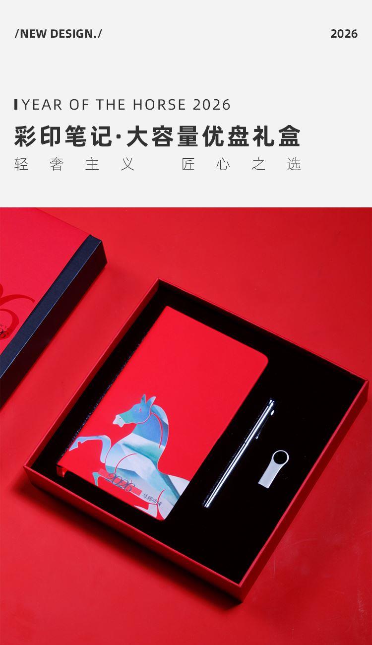 青锦2026【绝影先锋】便携彩印笔记本金属签字笔优盘礼盒