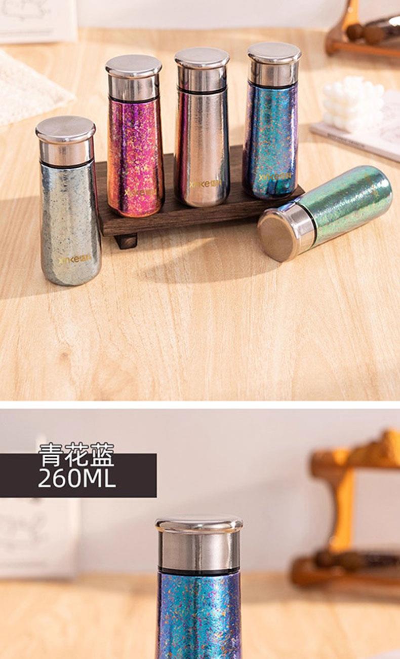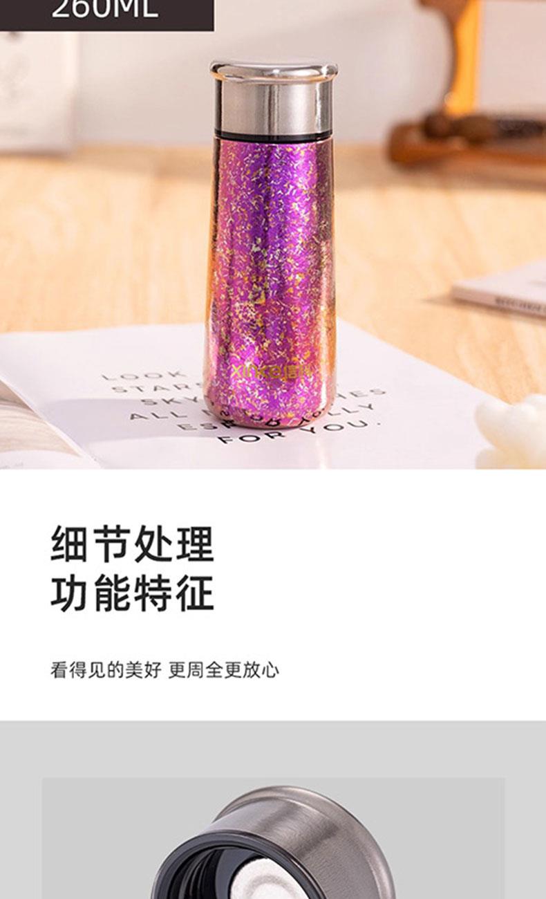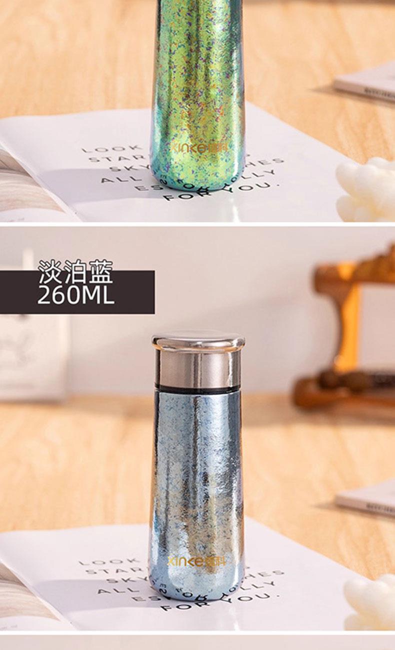 单个尺寸:16.4x6.2cm 外装尺寸:7*11*21.6cm 产品容量:260ml 净重:153.3g 颜色:银色、蓝色、淡蓝色、绿色、粉色