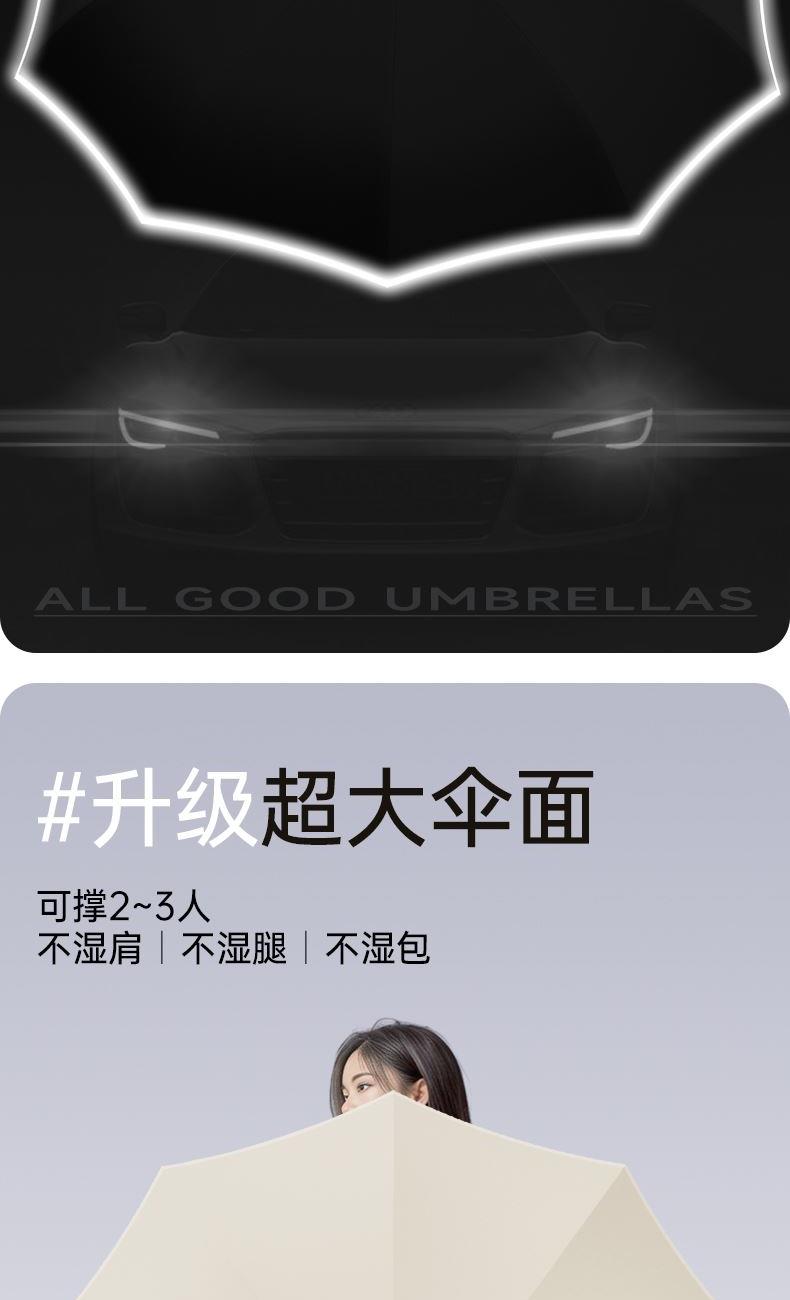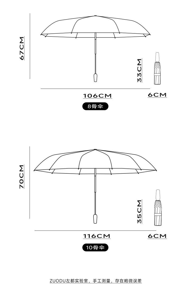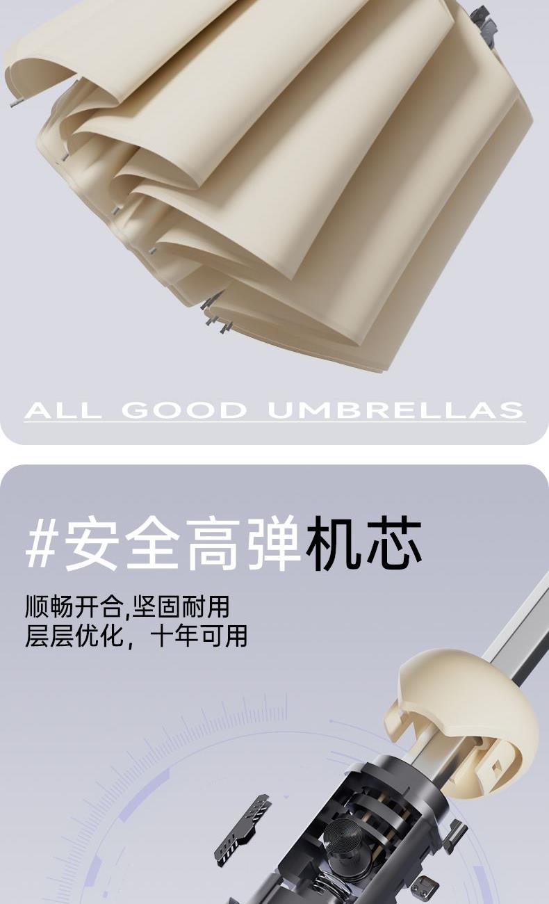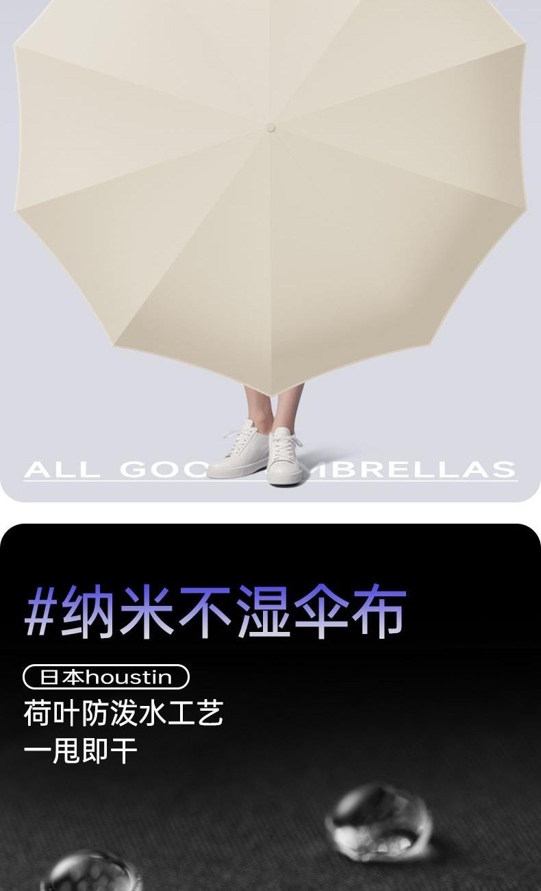 商品货号:ZD143 伞架材质:不锈钢,玻纤,不锈钢中棒 伞面材质:280T抨击布 款式:全自动三折晴雨伞(23寸/25寸) 商品参数:直径:105cm /115cm 高度:63cm 收拢直径:6cm 收拢高度:33cm/35cm 商品毛重:420克/470克 商品颜色:米咖色 迷雾灰 星空黑 雾霾蓝 晨雾绿 木槿紫 淡雅红 石墨灰 商品包装:本布伞套