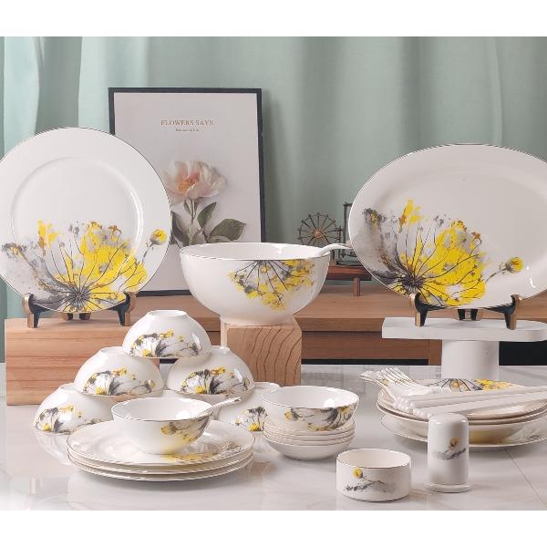 型号:MC-FY4059C 规格:4.5英寸碗*8, 小汤勺*8, 8英寸深盘*4, 陶瓷筷子*8, 8英寸平盘*4, 8寸碗*1, 小 吃 碟*4, 大汤勺*1 10寸看盘*1, 12寸鱼盘*1 枫叶在中国文化中具有丰富的象征意义,鸿运当头·枫叶因其在深秋时节特别红艳,常被用来象征好运和顺利。友谊爱情·红枫叶因其鲜艳的颜色,常被用作友谊和爱情的象征。在中国文化中,赠送枫叶作为礼物,可以表达对朋友或爱人的深厚情感和美好祝愿,枫叶的凋落也常引发人们对过去美好时光的怀念和眷恋。看到掉落一地的枫叶,人们不禁会感叹曾经经历过的往事,表达了对人生的回忆和眷恋。