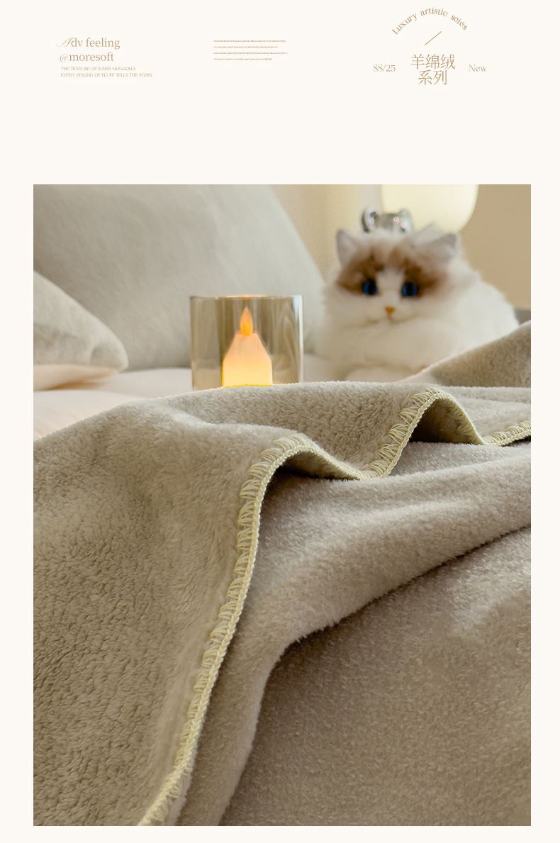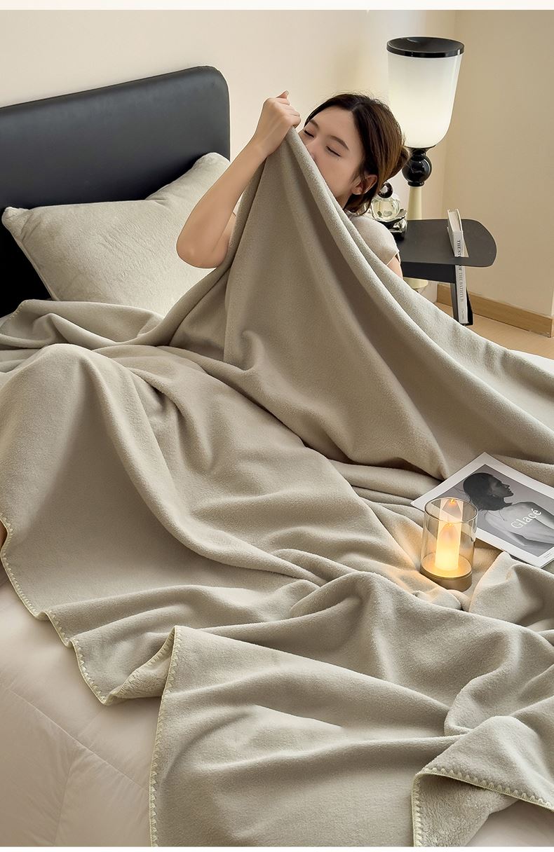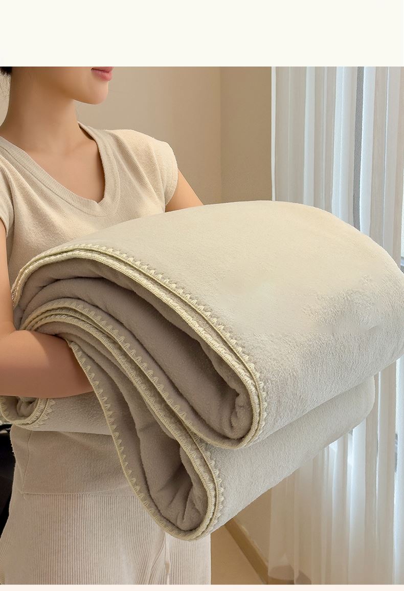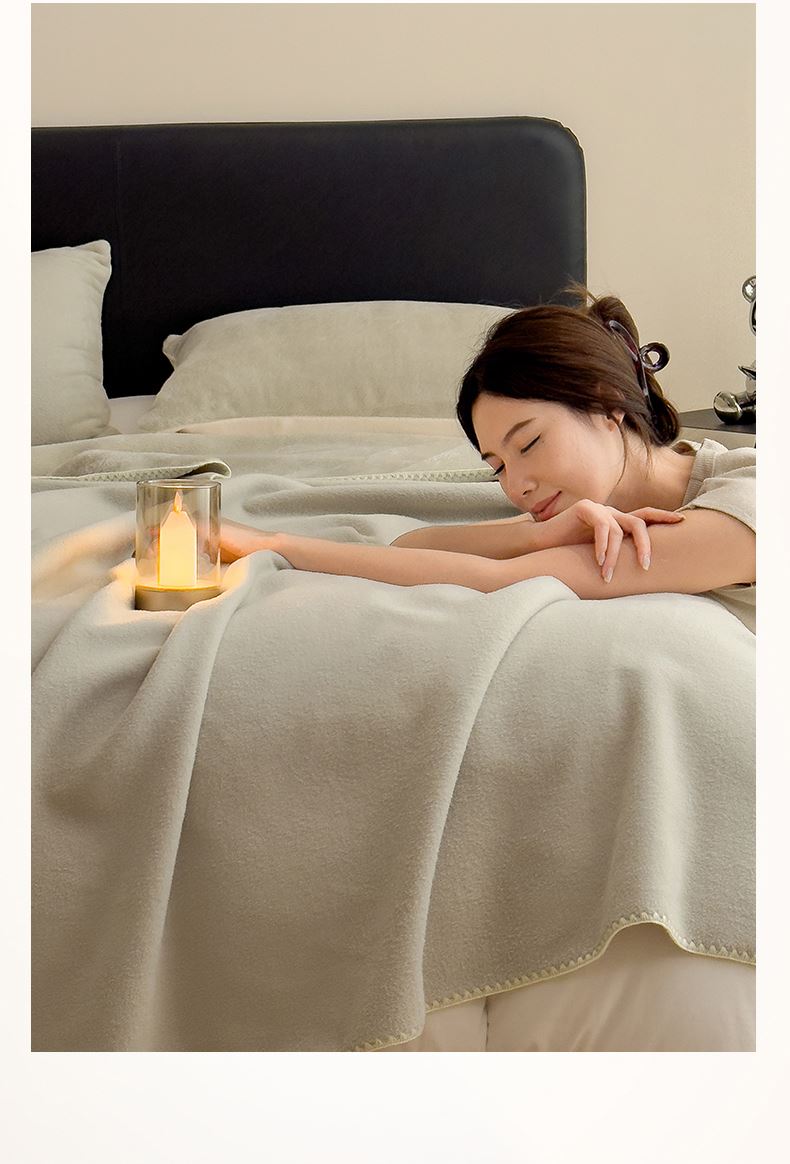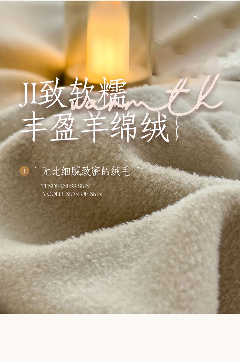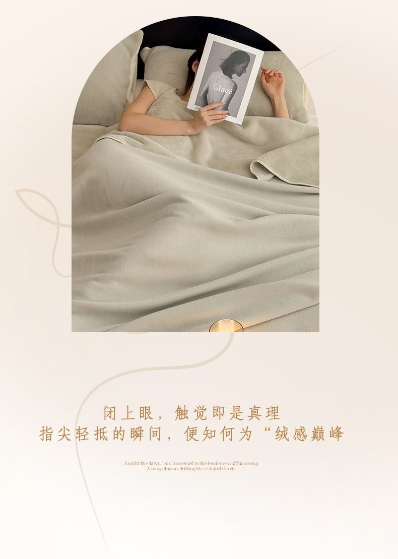 规格:180*200cm 面料:獭獭绒 克重:1100g 产品包装:精美礼盒 包装尺寸:48*35*16cm 1.獭獭绒面料纤维细腻蓬松,触感柔软、顺滑亲肤。 2.面料柔和细腻,保暖性突出,轻盈不压身,盖在身上无压迫感。