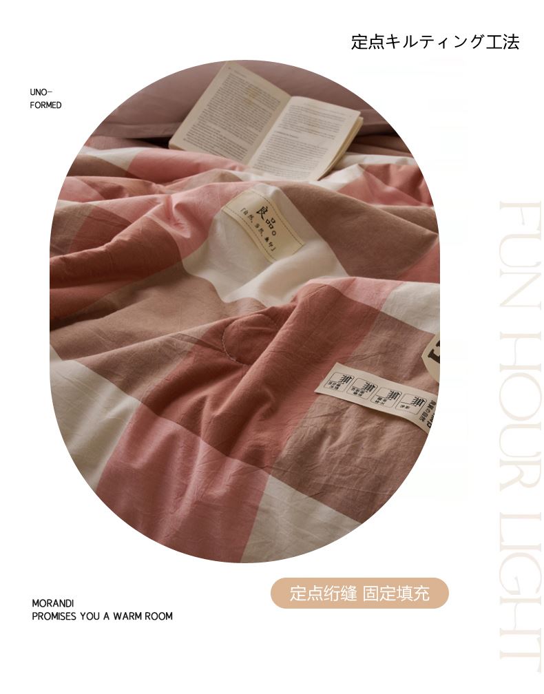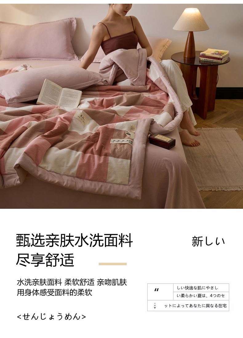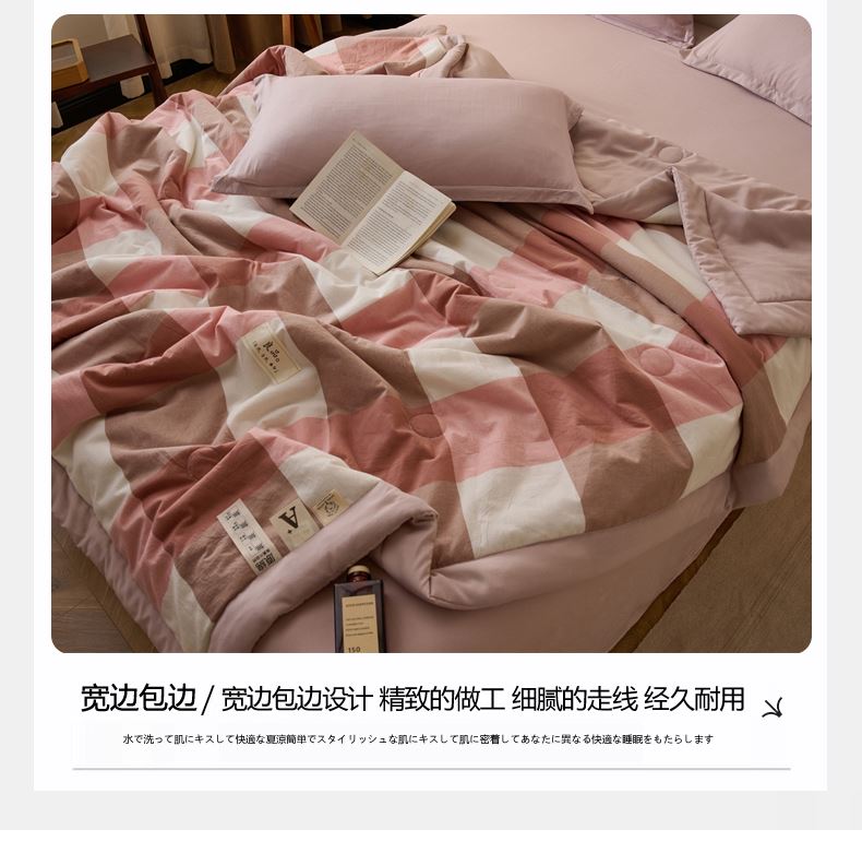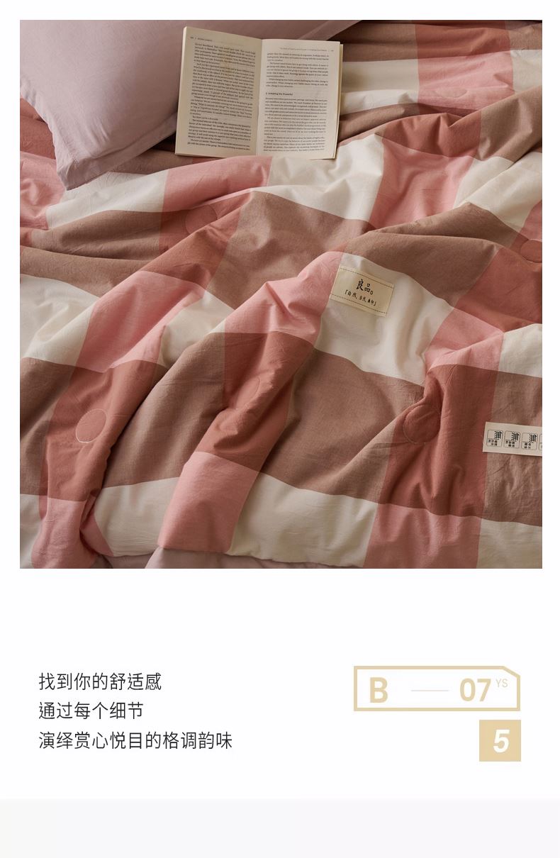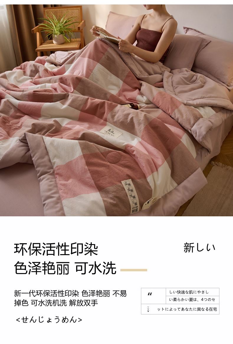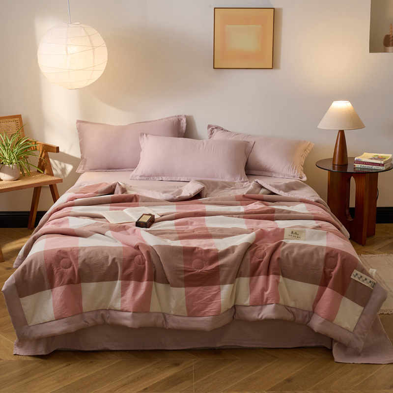百丽安娜无印风水洗夏被-粉格