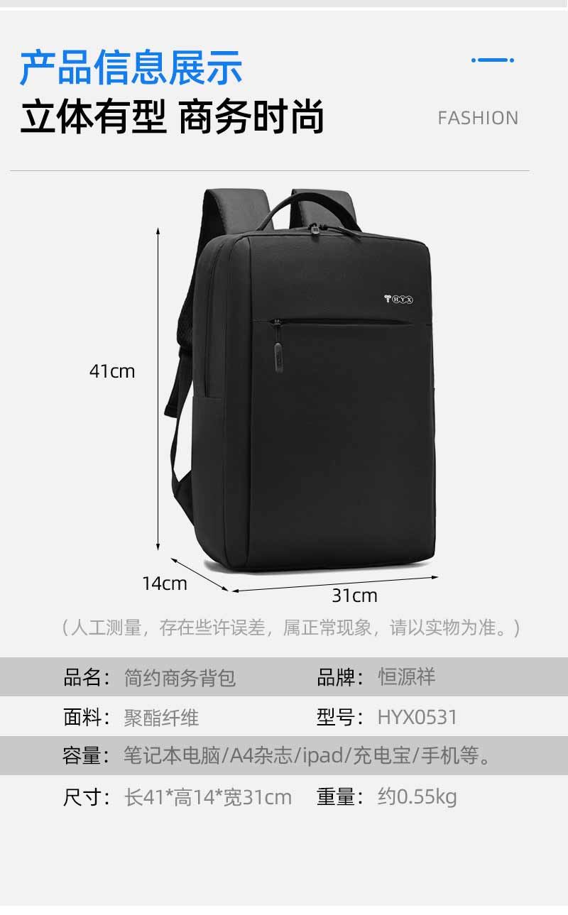 恒源祥(HYX)简约商务背包HYX0531黑色
