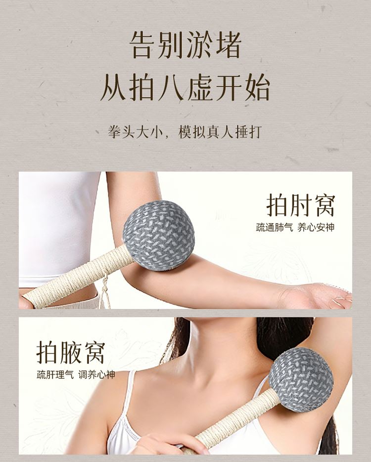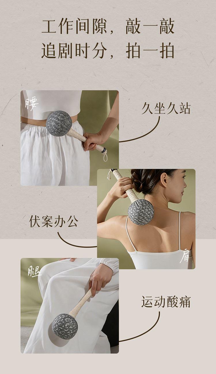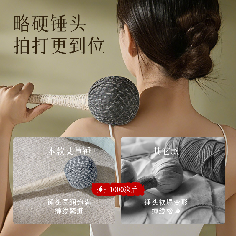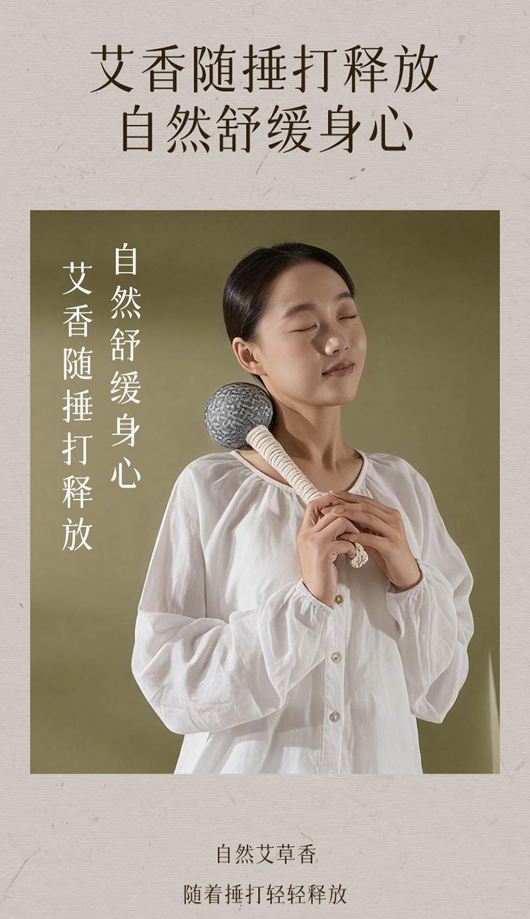 条码:6946592146792 规格:10*2cm 填充:艾草 面料:锤头:99.99%聚酯纤维 配绳:99.99%棉 基本特性:采用天然艾草为主要填充物,其设计融合“拍打经络” 和 “艾灸疗法” 的理念,兼具文化内涵与美观性。手感舒适加长设计,方便拍打背部等部位。 特性优势:通过有节奏地拍打身体,能刺激经络和穴位,促进气血循环,帮助身体排出湿气,达到舒缓肌肉、缓解疼痛的效果,还能调和脏腑功能,改善消化。 益处价值:使用艾香锤可以轻松缓解肩颈、腰背等部位的僵硬和酸痛,让身体得到放松,恢复精力。艾草的香气具有安神的作用,睡前使用艾香锤拍打身体,能帮助放松身心,减轻压力,让使用者拥有更优质的睡眠。 适合人群:办公室白领、考研/考公党、颈椎病人群、体态养护、鼻炎换季舒缓