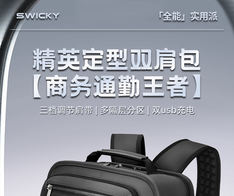 SWICKY精英定型双肩包-商务款82527黑色