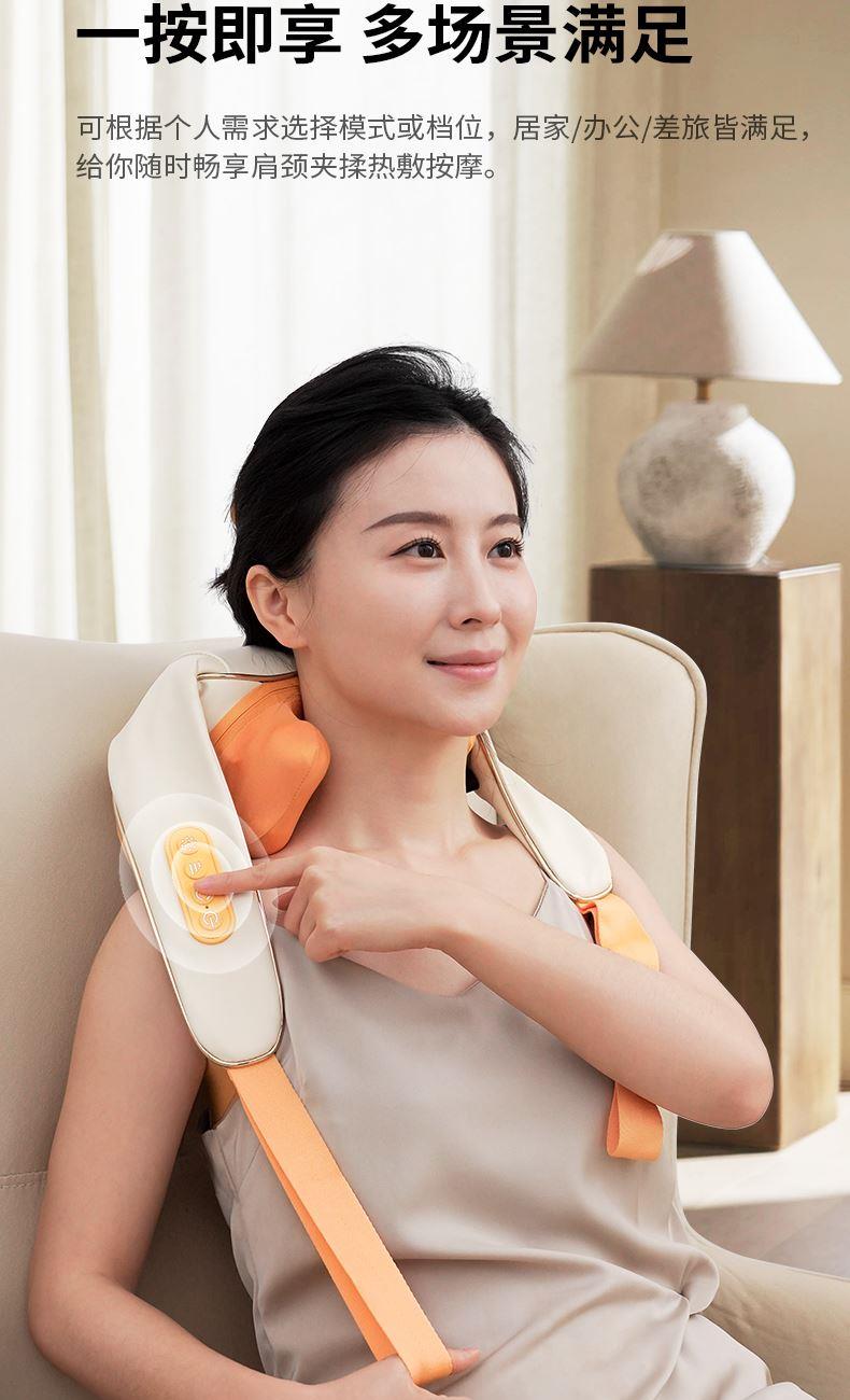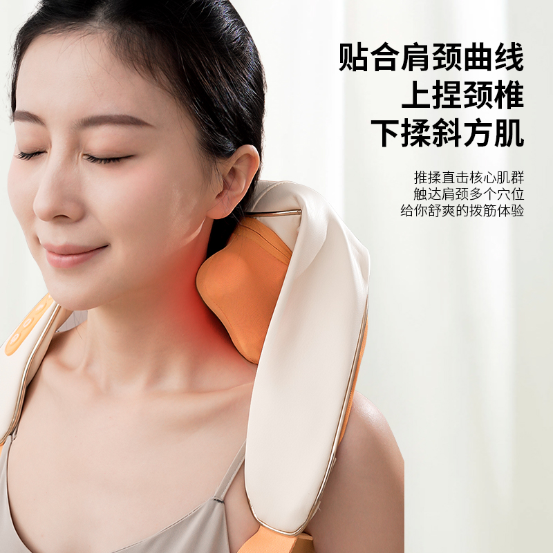 额定电压:5V 额定功率:10W 工作电压:7.4V 工作功率:15W 材 质:PU皮 > 穿戴便捷,解放双手,适合办公、居家等多场景使用 > 五种模式可选,四档力度,低高挡两种加热 > 满足多种需求,简单易操作,一键轻松掌控 > 模拟人手虎口八字揉拿法,拿捏斜方肌 > 斜方肌、肩颈、腿部等按摩,一机多用途