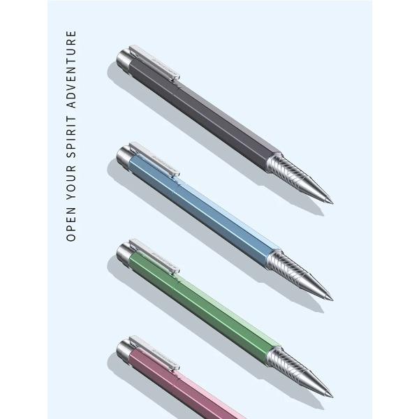 签字笔类型:可替换芯宝珠笔 重量:墨水/宝珠笔25g/30g 颜色分类:暮云隐灰冰川微蓝青空橄榄春日樱花海角雾蓝薰衣草紫 书写粗细:0.6mm 整笔材质:铝铜 笔身:经典八角设计 笔盖:卡扣嵌套设计 笔握:24mm中距笔握 套餐类型:官方标配 包装方式:礼盒装 适用场景:送礼书写 适用人群:文艺青年 笔杆材质:金属 笔身纹理:磨砂