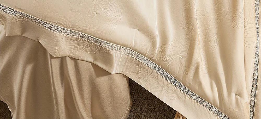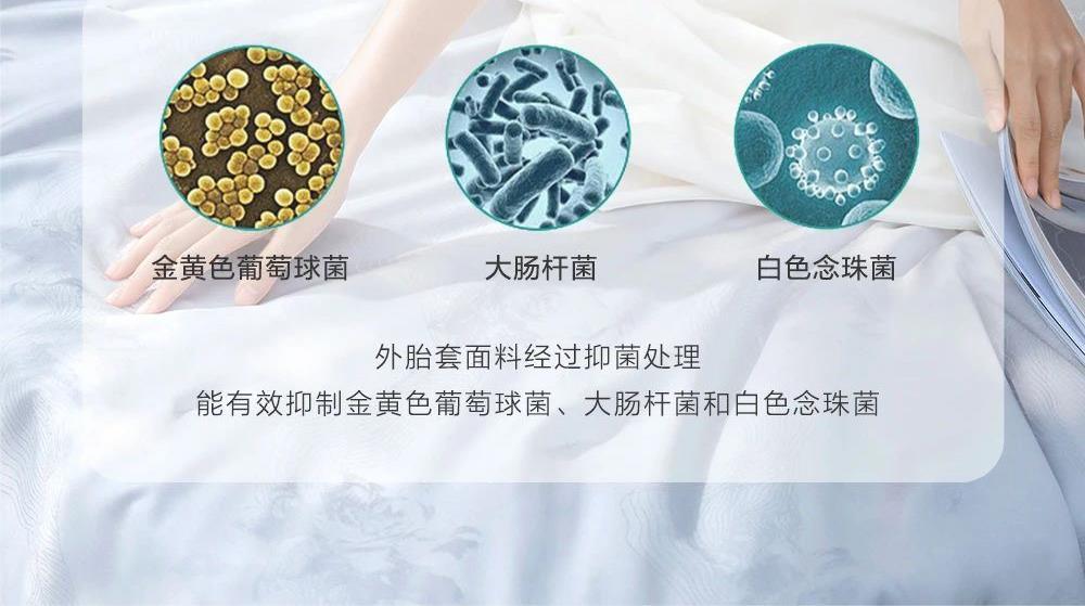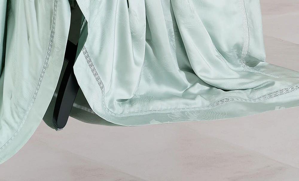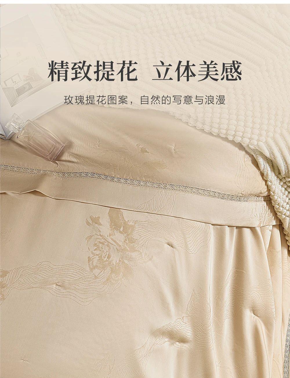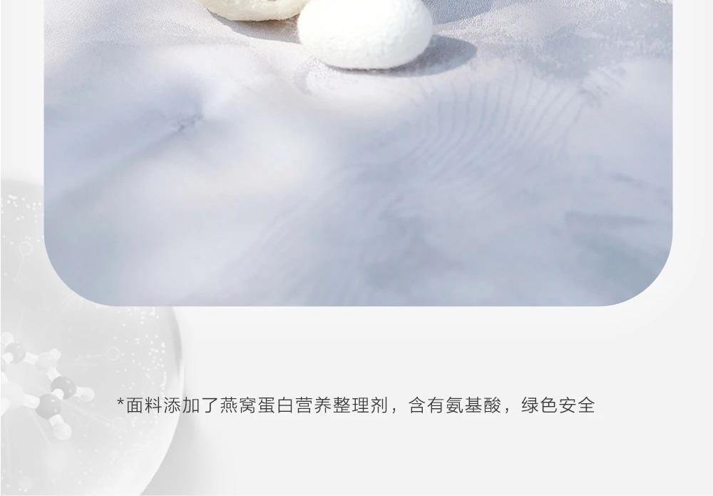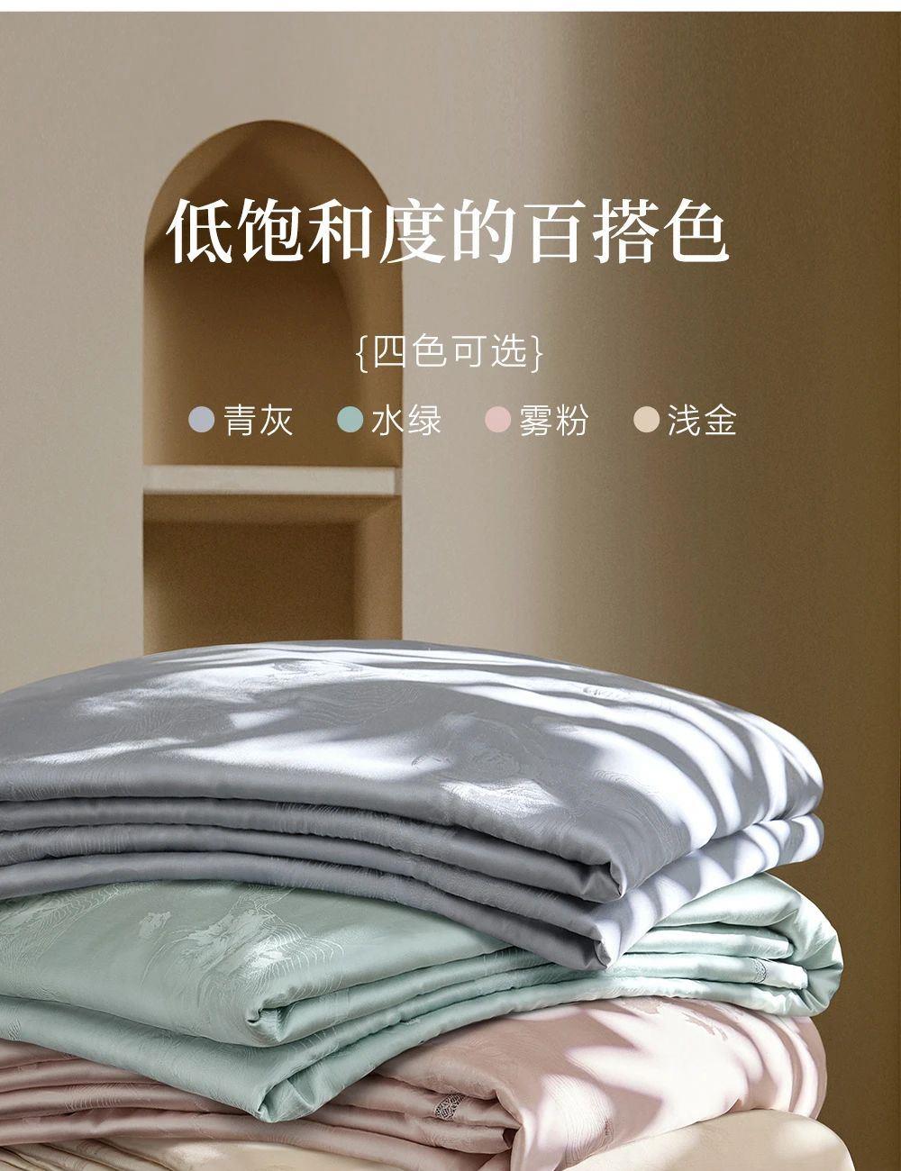 规 格: 面料:胎套面料:100再生纤维素纤 维(装饰辅料除外) 填充物成分:100桑蚕丝(长丝绵) 尺寸:300g/200cm ×230cm 颜色:青灰色/水绿色/雾粉色/浅金色 推荐理由:该夏被胎套面料加入了燕窝蛋白,具有补水保湿、抗氧hua功效,尤其适合皮肤容易干燥、高温日晒的夏季。选用 100桑蚕丝(长丝绵)填充,亲肤舒适,双向调温,久睡不粘,同时,胎套面料选用兰精天丝,具有顺滑如瀑、柔软细腻、亲肤透气等特性 且自带光泽感,满足消费者对夏季舒适睡眠的需求